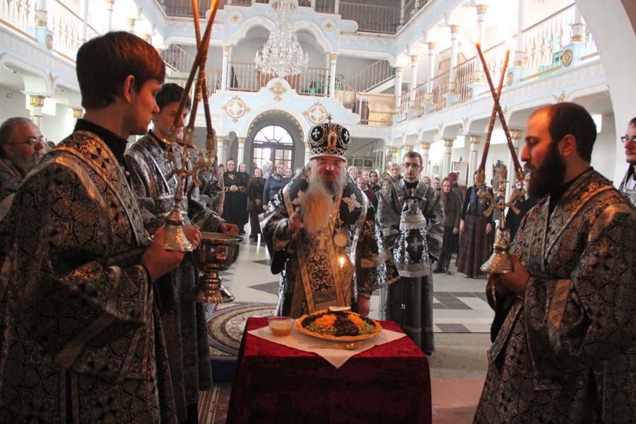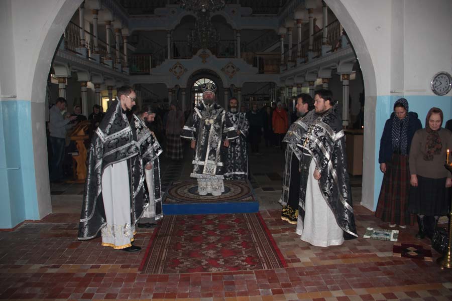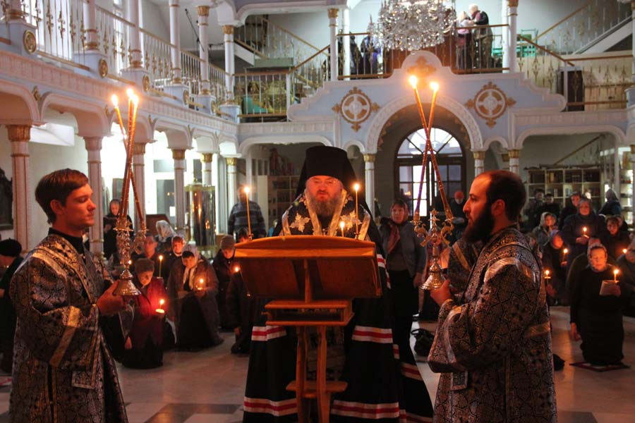 Вечером в понедельник владыка совершил великое повечерие с чтением канона преподобного Андрея Критского в Свято-Успенском соборе города Козельска.