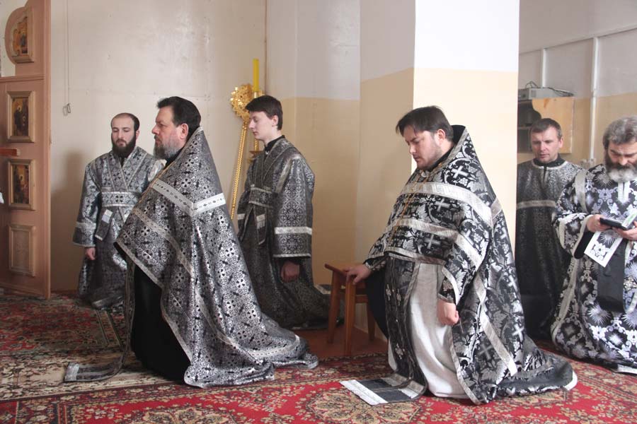 Во вторник вечером архипастырь совершил богослужение в Благовещенском храме Козельска. Первую литургию Преждеосвященных Даров епископ Никита совершил в Успенском соборе.