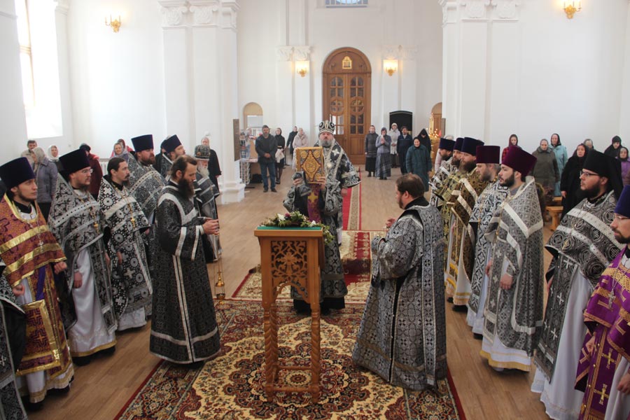 6 апреля. Предпразнство Благовещения Пресвятой Богородицы. Епископ Козельский и Людиновский Никита возглавил Божественную литургию Преждеосвященных Даров в храме Богоявления Господня города Козельска.