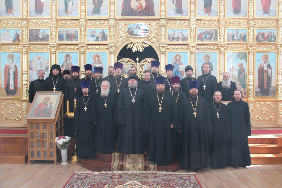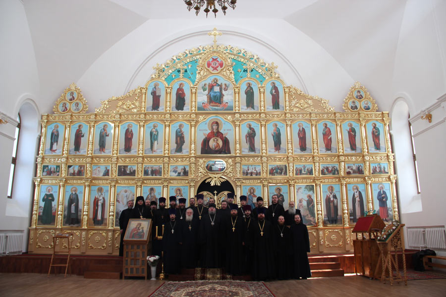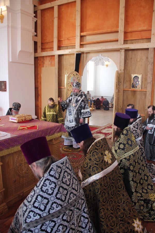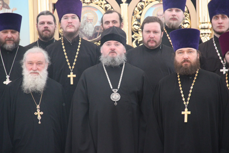 Архипастырю сослужили: протоиерей Владимир Бахаев – секретарь епархии, благочинный первого округа, а также настоятели и клирики храмов Козельского района. В этот день состоялось традиционное великопостное говение священнослужителей. Исповедь принимал духовник епархии протоиерей Валерий Клинов. По отпусте литургии владыка Никита совершил освящение нового иконостаса сооруженного на средства благотворителей для Богоявленского храма.