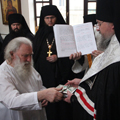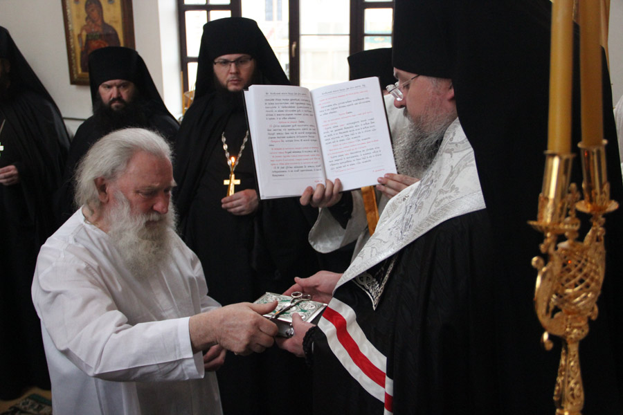 Постриг состоялся в храме в честь преподобного священномученика Кукши просветителя вятичей мужского монастыря Спаса Нерукотворного Пустынь.