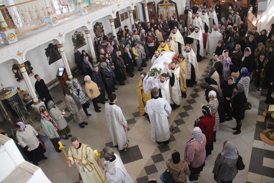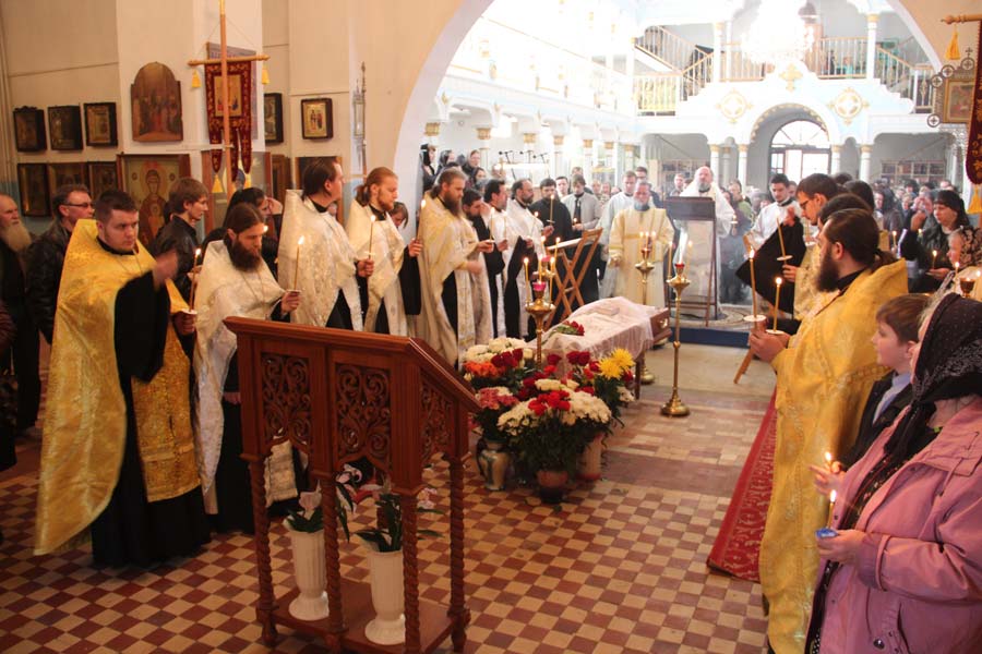12 апреля в Свято-Казанском соборе города Людинова епископ Козельский и Людиновский Никита возглавил чин погребения трагически погибшего в автомобильной катастрофе настоятеля храма святых мучеников Флора и Лавра в селе Зикеево Козельской епархии священника Александра Довганюка.