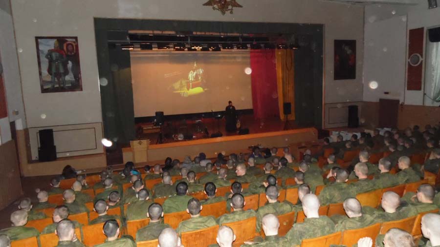 В Гвардейской ракетной дивизии г. Козельска 3 апреля прошел концерт православной группы «Сыновья России». Перед началом концерта выступил иерей Николай Кузнецов.