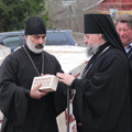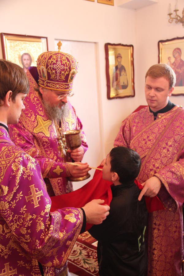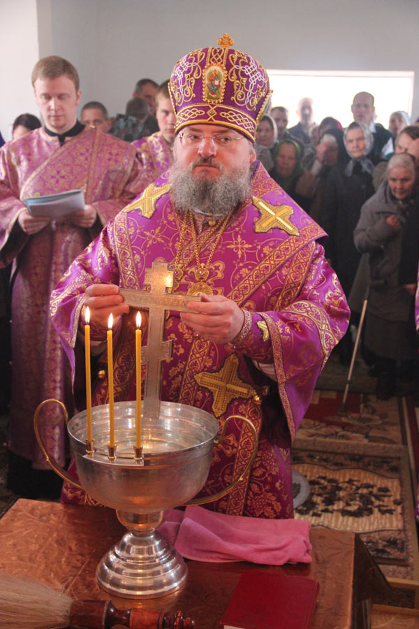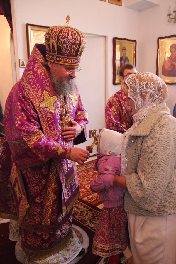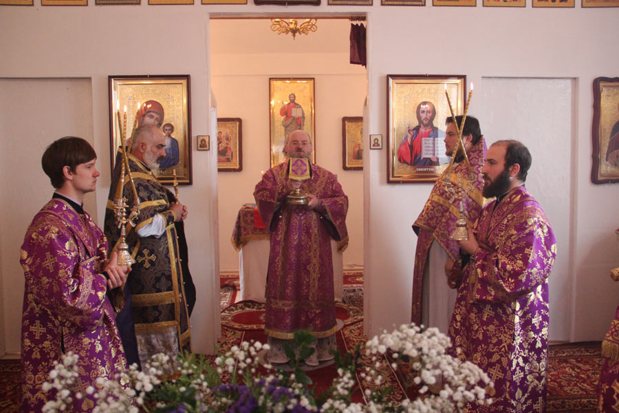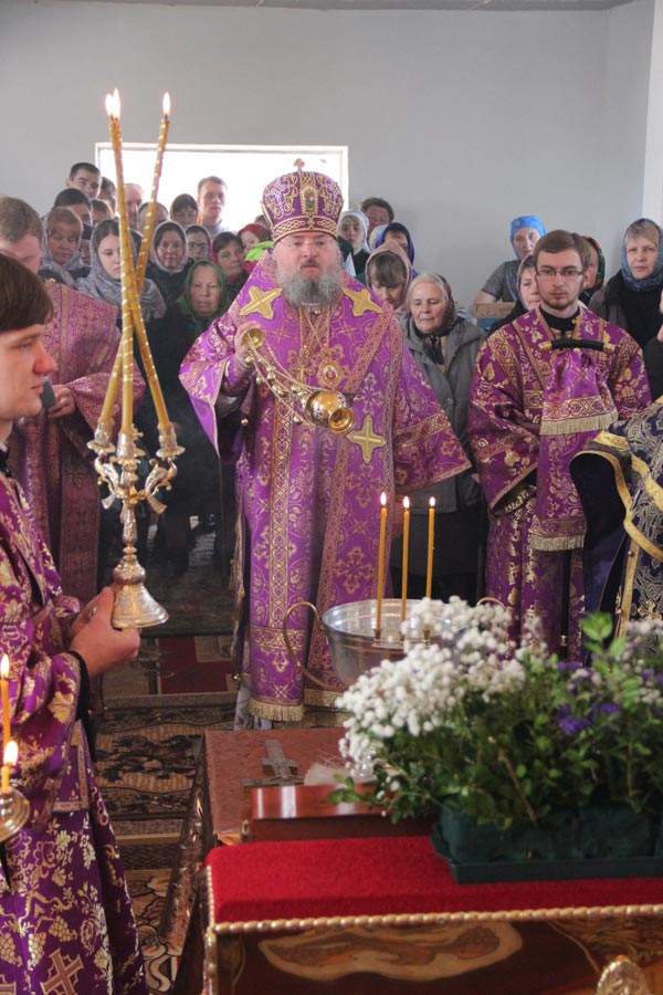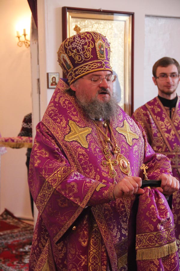 Его Преосвященству сослужили: благочинный округа протоиерей Александр Карпов, иерей Антоний Хатунцев, иерей Геннадий Сафиев – настоятель храма и диакон Евгений Ковригин. По отпусте литургии владыка обратился к богомольцам с архипастырским словом.