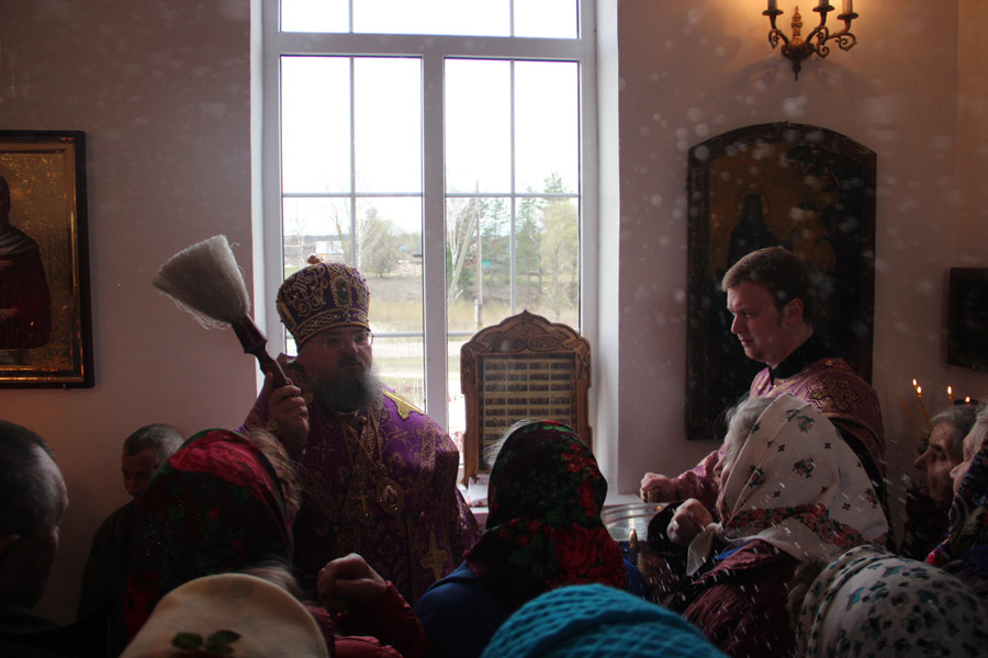 17 апреля. Неделя пятая Великого Поста. Преподобной Марии Египетской. Управляющий Козельской епархией епископ Козельский и Людиновский Никита возглавил малое освящение храма и Божественную литургию святителя Василия Великого в приходе Покрова Пресвятой Богородицы села Кудрявец Хвастовичского благочиния Козельской епархии.