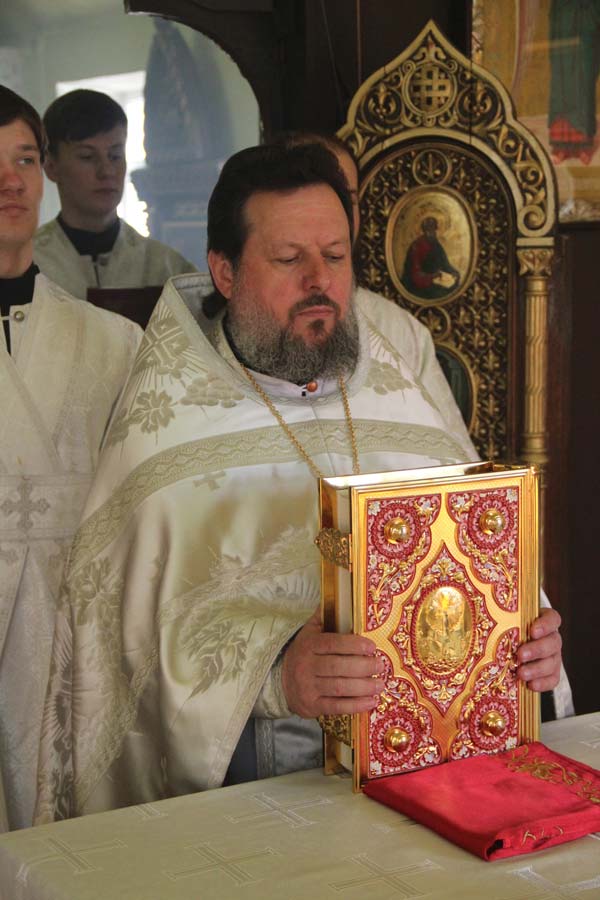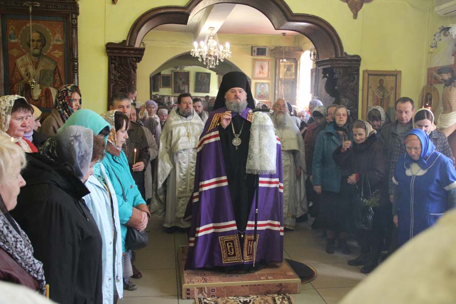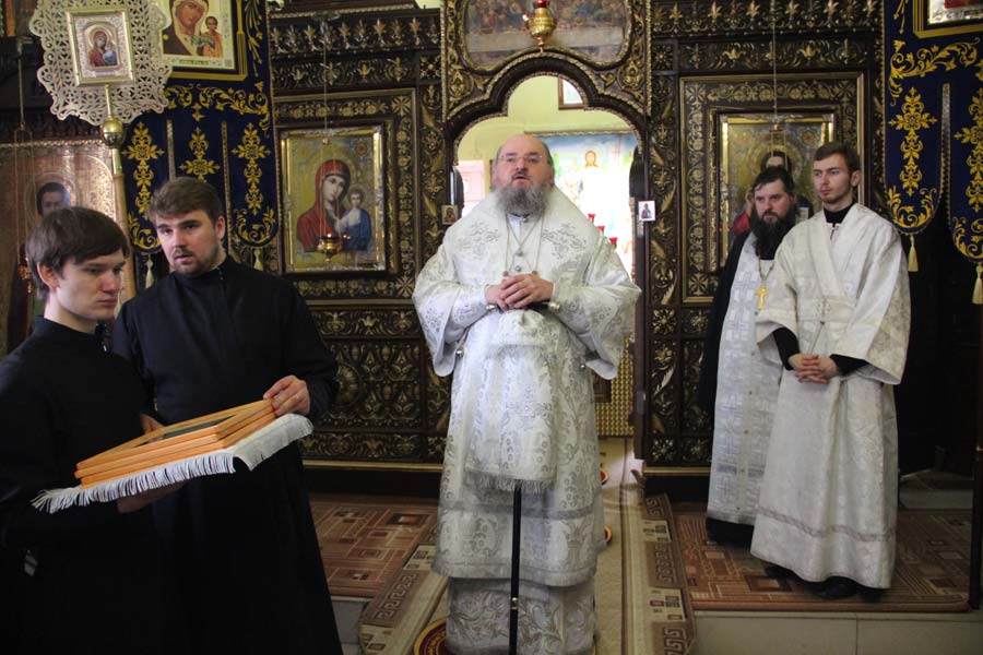 Его Преосвященству сослужили: благочинный округа – протоиерей Василий Биляк, протоиерей Алексий Жиганов – духовник епархии, протоиерей Михаил Карпенко – настоятель храма, иерей Антоний Хатунцев, иерей Артемий Арутюнян, диакон Евгений Ковригин и иеродиакон Сергий (Тимофеев).
