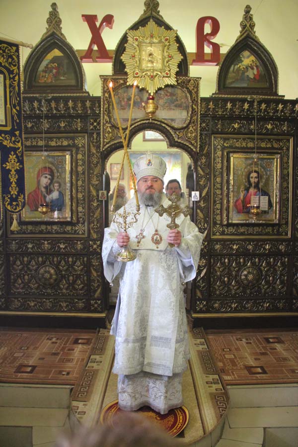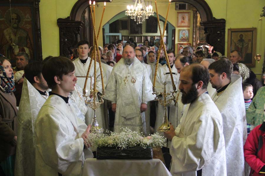 По отпусте литургии священнослужители, в центре храма пред образом праведного Лазаря, совершили славление праздника, а затем владыка обратился к богомольцам с архипастырским словом.