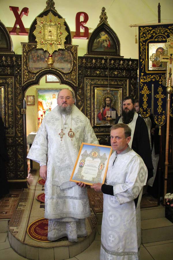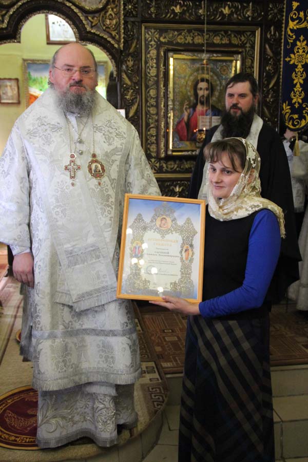 Архиерейскими грамотами в связи с престольным торжеством и грядущим праздником Святой Пасхи были награждены наиболее активные члены прихода.