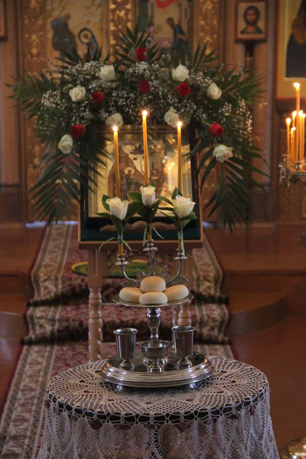 Преосвященнейшему владыке сослужили клирики соборного храма. На утрени после прочтения Евангелия архипастырь совершил освящение ваий.