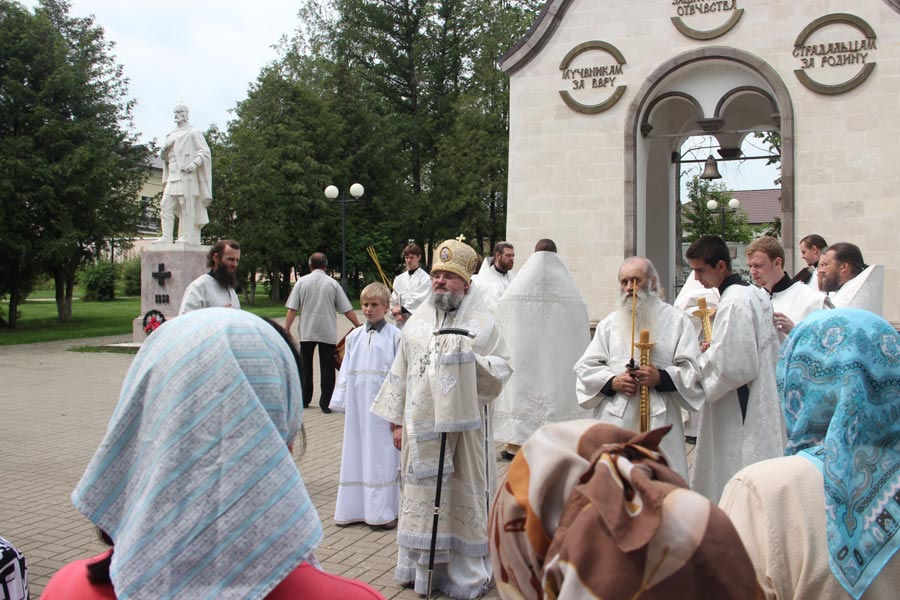 В храме Святого Духа епископ Козельский и Людиновский Никита в этот день, в сослужении городского духовенства, совершил заупокойную Божественную литургию после которой возглавил панихиду на городской площади у часовни, воздвигнутой в честь героев нашего Отечества, отдавших свои жизни за други своя.