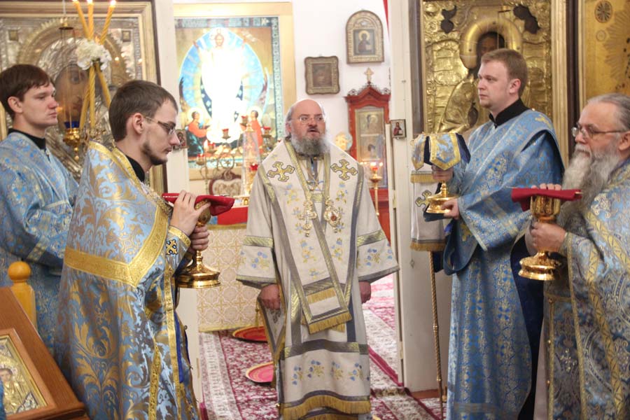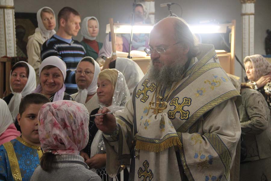 Управляющий Козельской епархией епископ Козельский и Людиновский Никита совершил всенощное бдение и Божественную литургию в Казанском кафедральном соборе города Людинова.