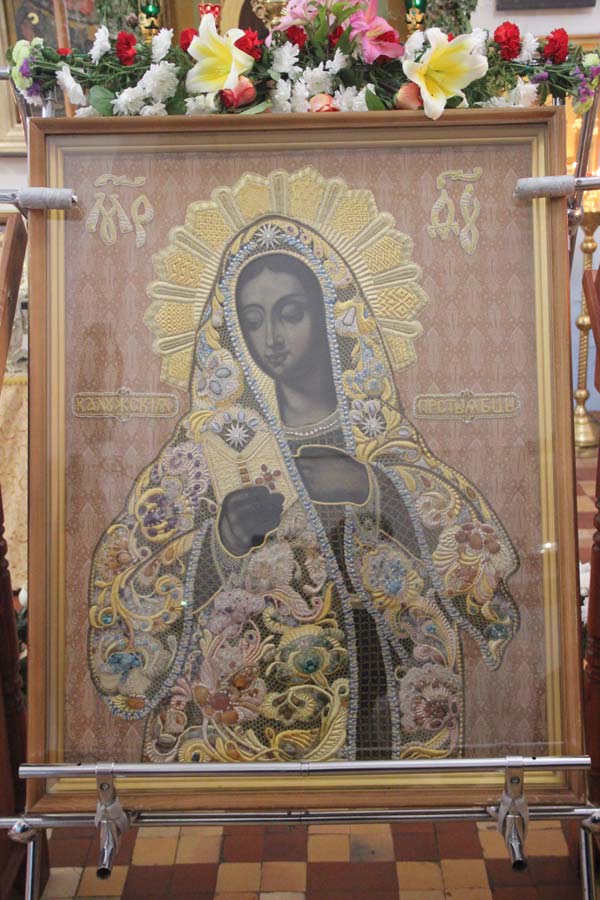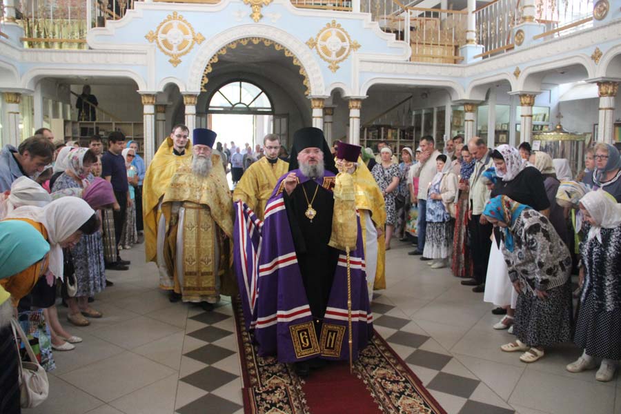По отпусте литургии священнослужители совершили молебен пред чудотворной иконой Царицы Небесной, после чего владыка обратился к богомольцам с архипастырским словом, а затем икона отбыла в Сергиевский храм города.