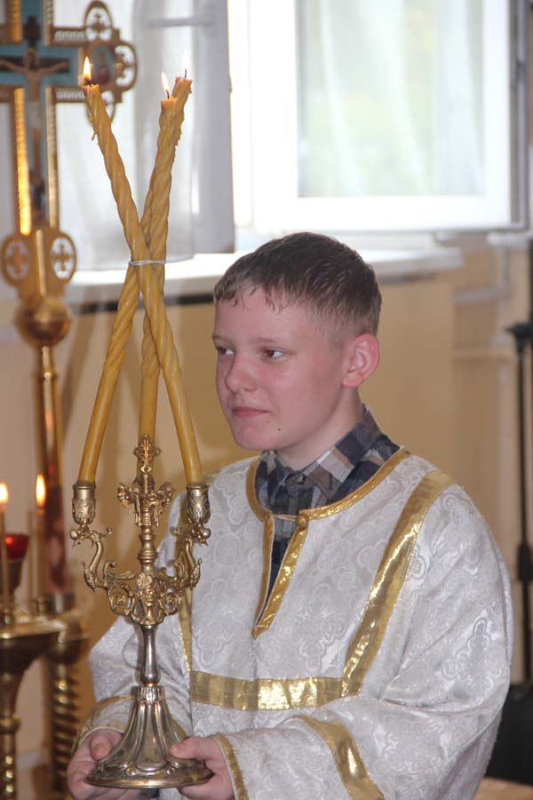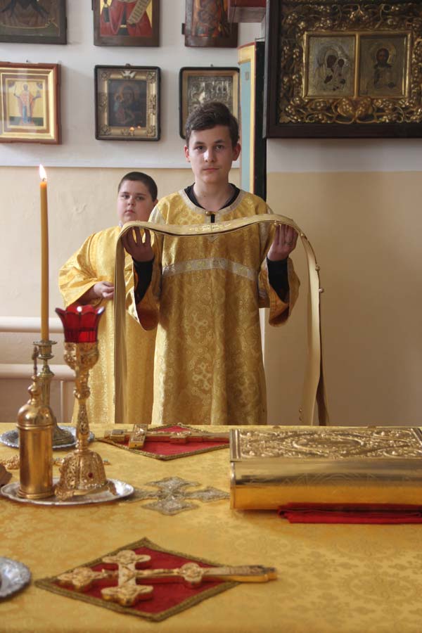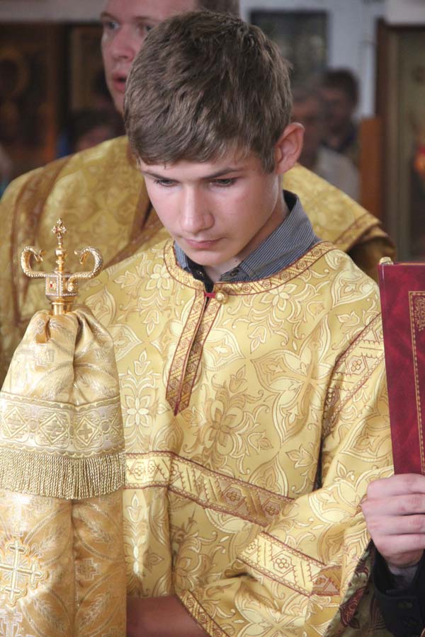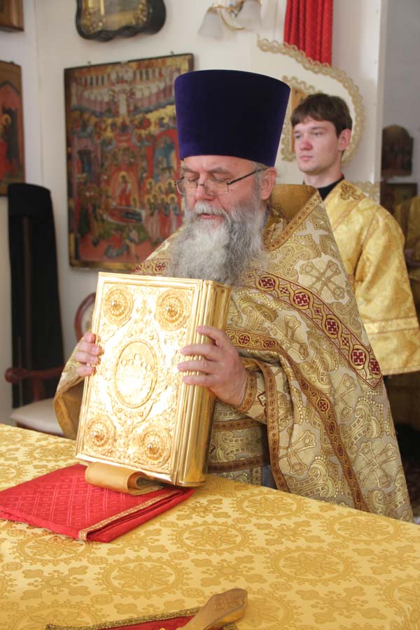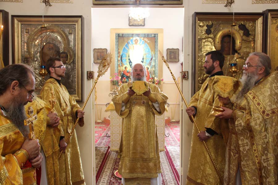 Архипастырю сослужили: настоятель храма, духовник епархии протоиерей Алексий Жиганов, клирики собора. Диаконский чин возглавил старший диакон епархии Евгений Ковригин.