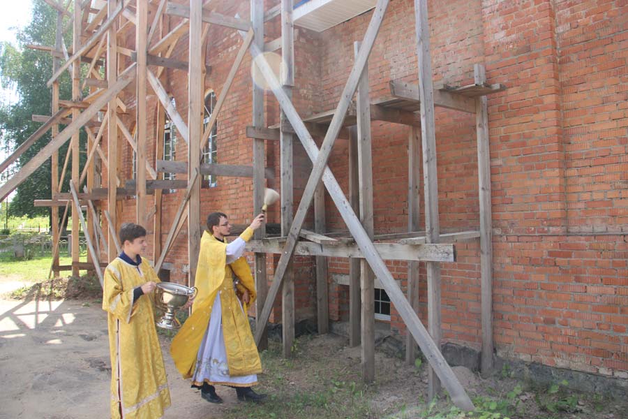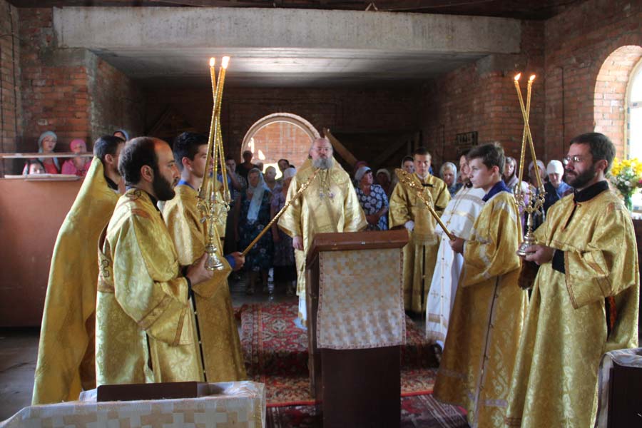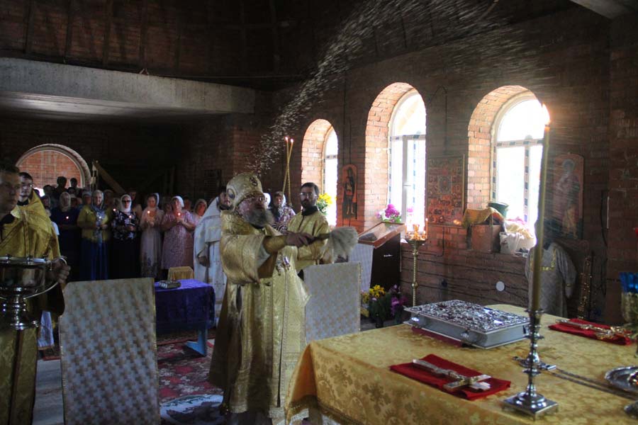 Епископ Козельский и Людиновский Никита совершил малое освящение и первую Божественную литургию в строящемся храме Казанской иконы Божией Матери села Букань Людиновского района.
