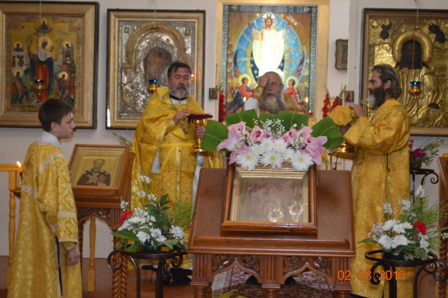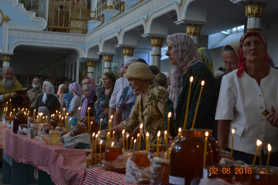Праздничные Богослужения возглавил настоятель Казанского собора протоиерей Алексий Жиганов. Его высокопреподобию сослужили: клирики Казанского собора, настоятель Лазаревского храма протоиерей Михаил Карпенко, иеромонах Сергий (Тимофеев), иеромонах Василий (Лукашов). По окончании Литургии, по установившемуся местному обычаю, настоятель совершил чин освящения мёда нового урожая.