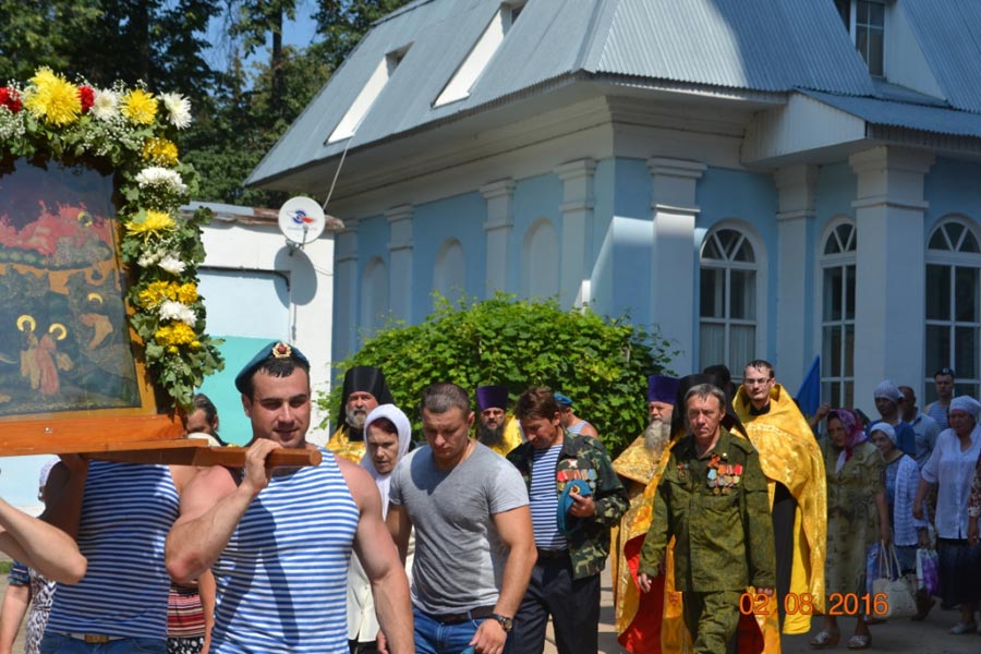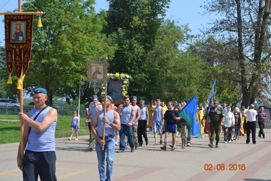 По окончании Богослужения состоялся традиционный Крестный ход по улицам города. В Крестном ходе участвовали десантники, такой доброй традиции в г. Людиново стараются придерживаться не первый год. Воздушно-Десантные войска — почитают пророка Илию, как своего Небесного покровителя. У Поклонного креста на площади Победы была совершена коленопреклоненная молитва о российском воинстве. Настоятель Казанского собора протоиерей Алексий Жиганов обратился к присутствующим с пастырским словом. Настоятель искренне поблагодарил десантников за молитву и участие в Крестном ходе, пожелал им помощи Божией и доброго здоровья!