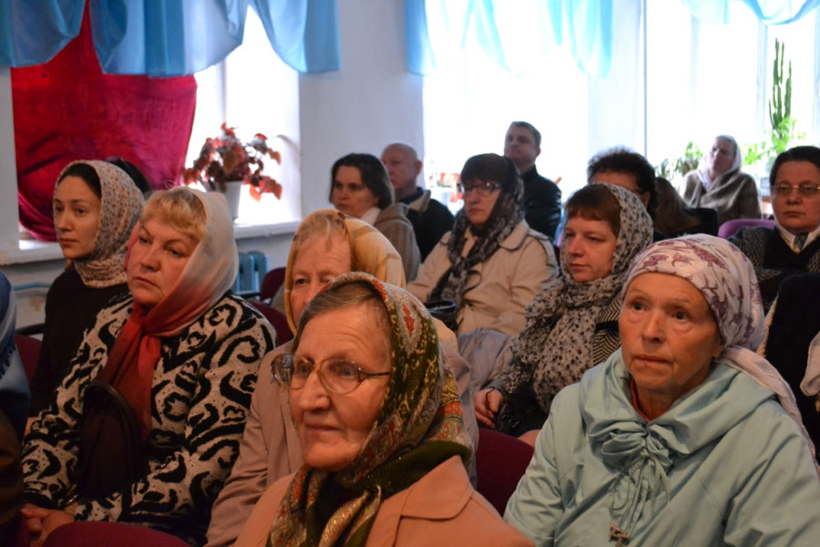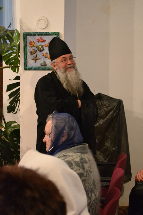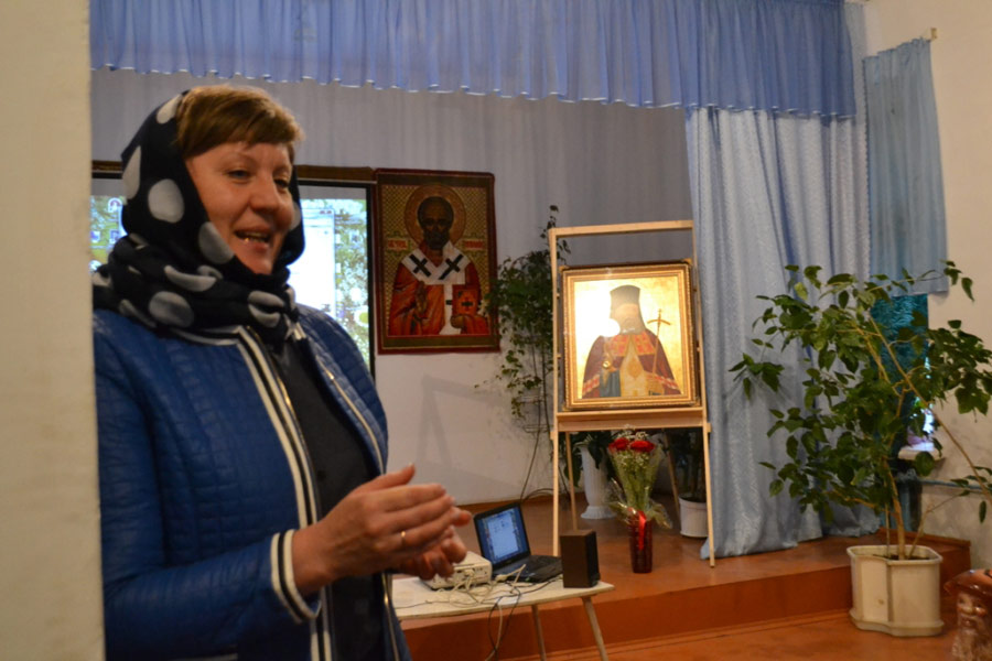 На мероприятии выступили: руководитель киноклуба «Встреча» Светлана Петровна Молодцова с словом о предстоящем просмотре фильма «Излечить страх» и прихожанин Казанского собора Николай Иванович Головкин, в былом крымчанин, с словом о воспоминании детских лет о встрече со святителем в 50-х гг прошлого столетия в г.Симферополе.