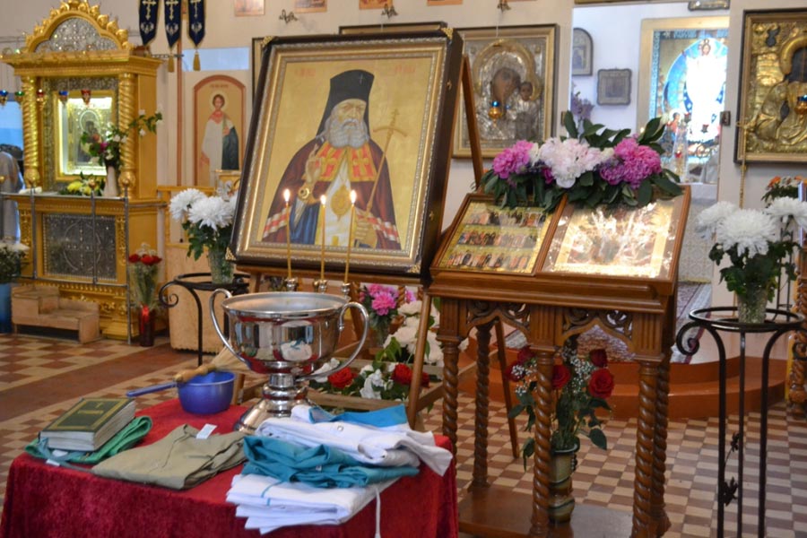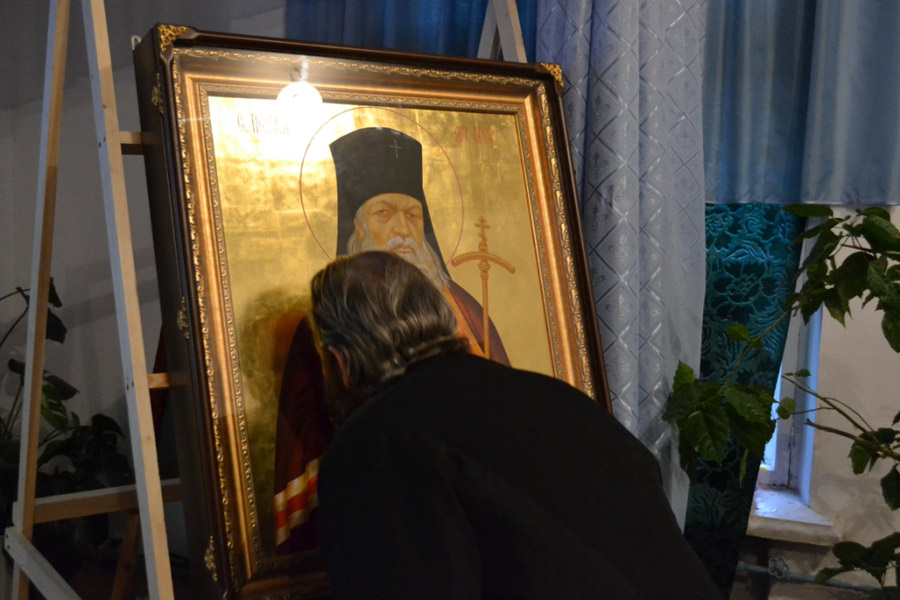 В день памяти, 11 июня, совершили молебен с пением акафиста святителю Луке и Божественную литургию.