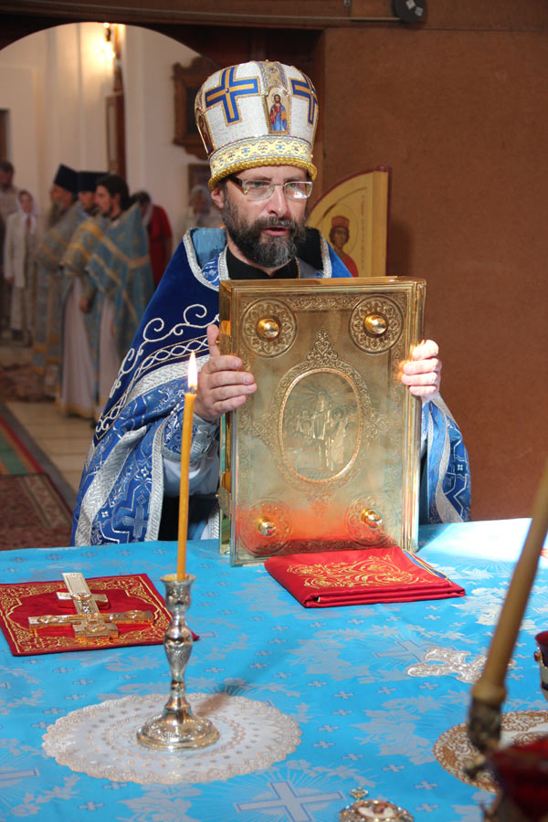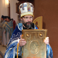 По окончании литургии священнослужители совершили праздничный молебен пред чтимым образом Царицы Небесной в завершении которого, вознеся молитву Пресвятой Богородице, владыка обратился к богомольцам с архипастырским словом.