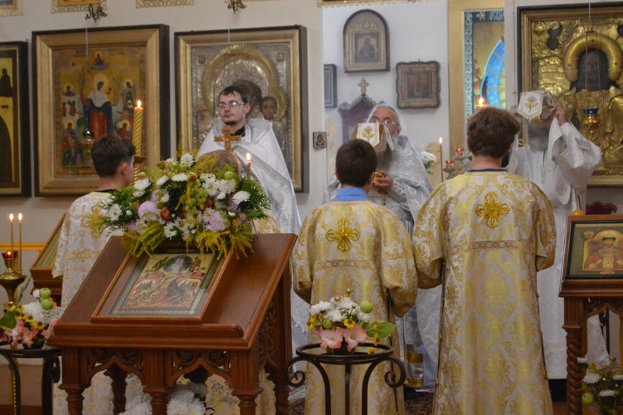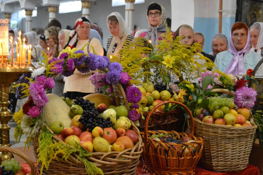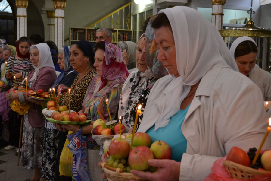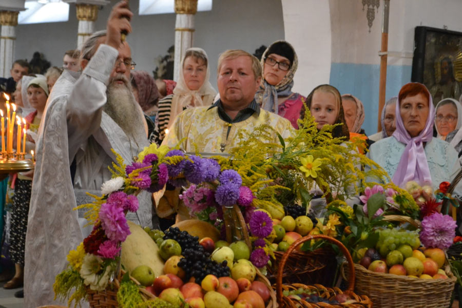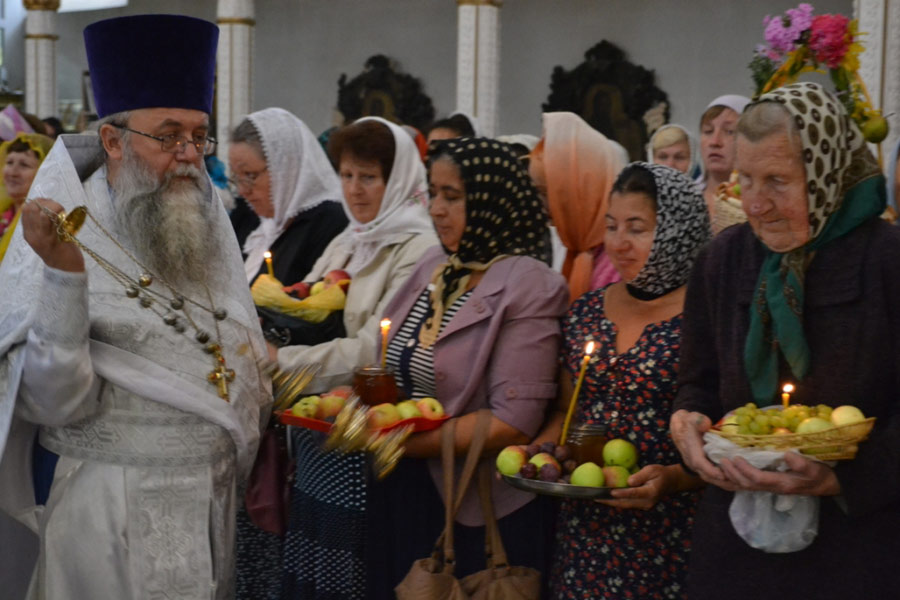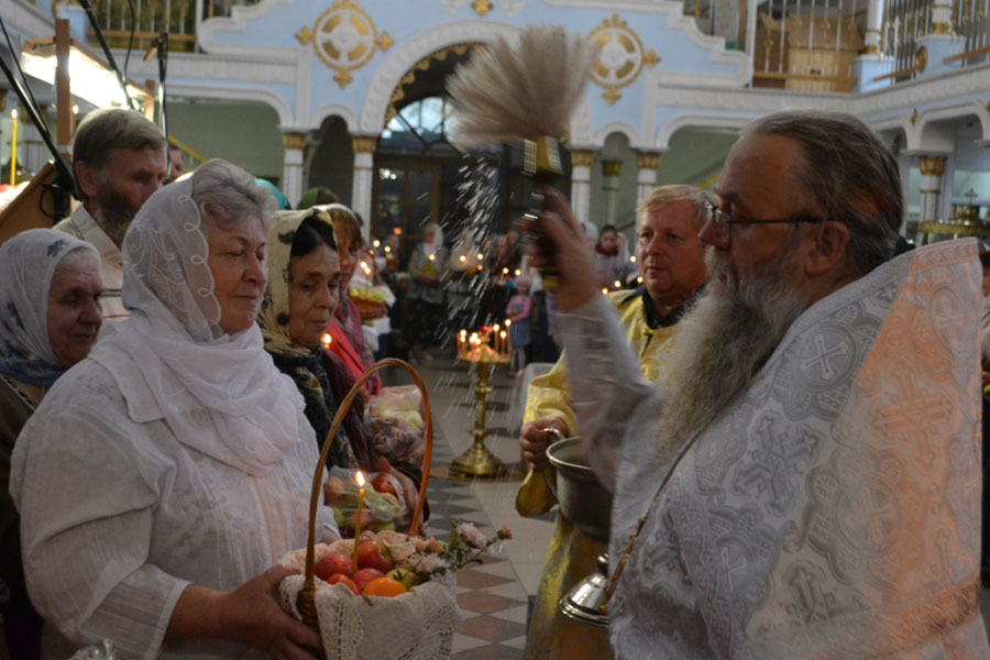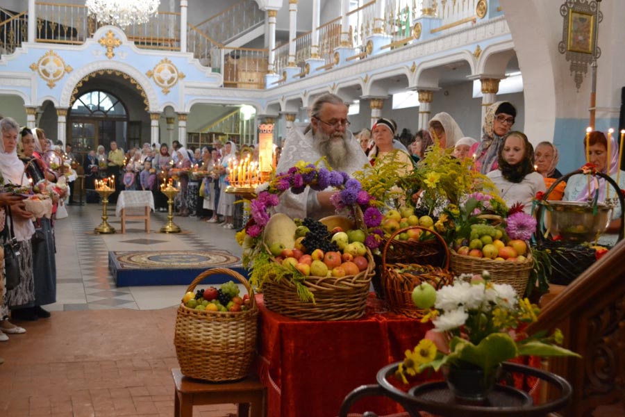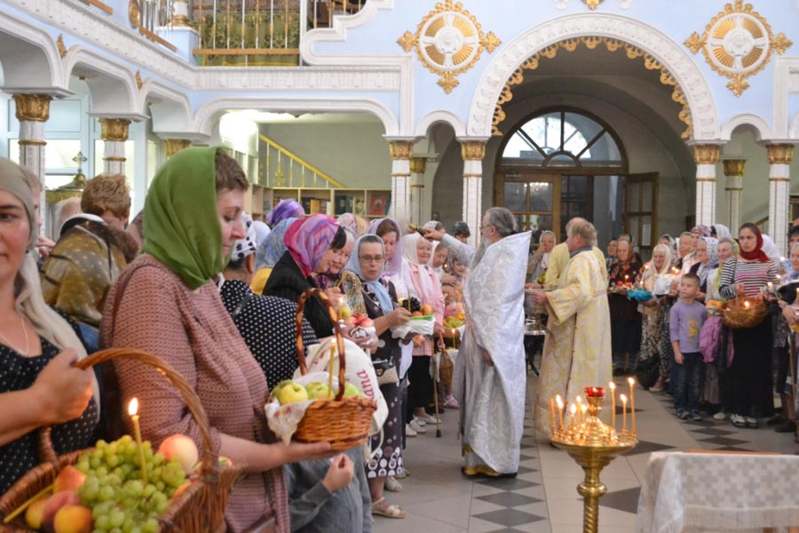 По окончании Божественной литургии настоятель совершил чин освящения винограда, яблок и др. плодов. Клирик собора иерей Алексий Сначев произнес проповедь о празднуемом событии.