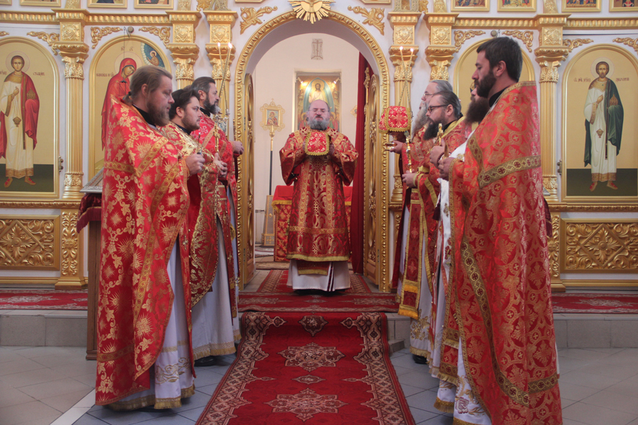 Архипастырю сослужили: протоиерей Алексий Жиганов – духовник епархии, протоиерей Иоанн Староста – благочинный округа, иеромонах Иеремия (Ильченко) настоятель храма, клирики епархии.