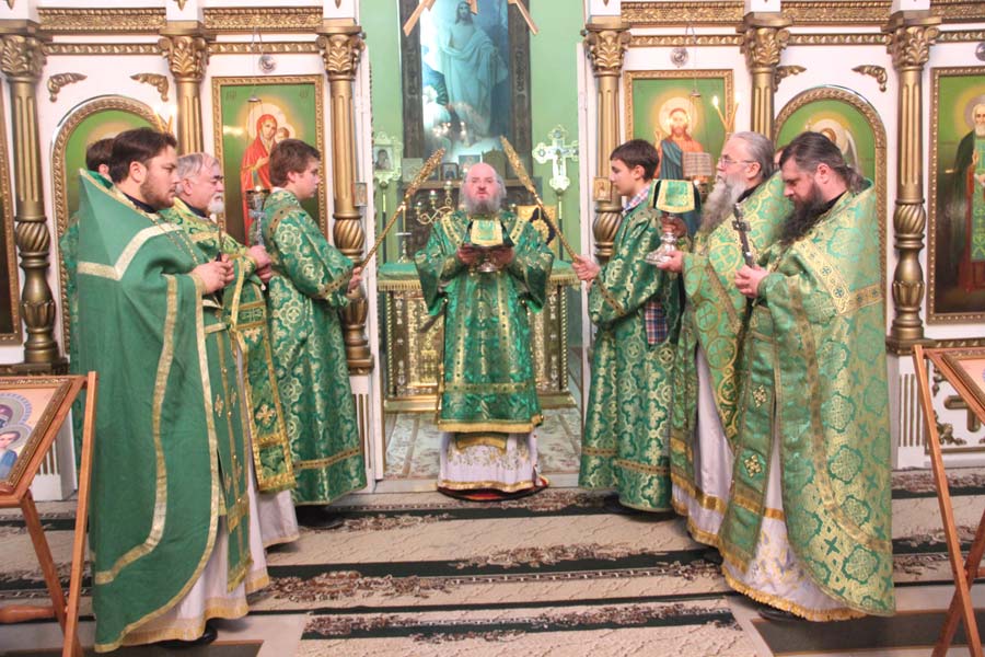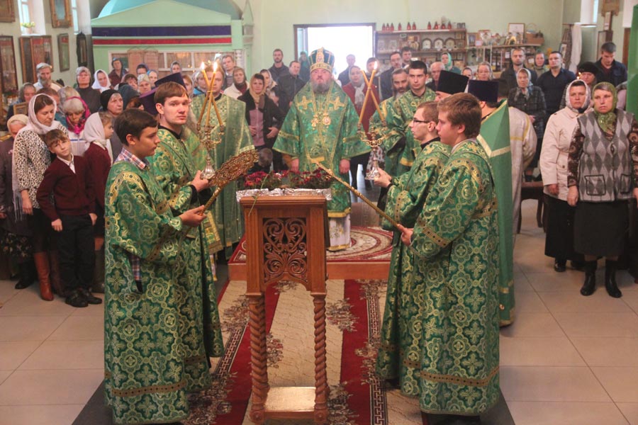 Архипастырю сослужили: протоиерей Алексий Жиганов, протоиерей Дмитрий Губаль, протоиерей Михаил Карпенко, иерей Антоний Хатунцев, диакон Евгений Ковригин и диакон Андрей Соколов. По отпусте литургии священнослужители, в центре храма пред образом святого совершили славление, а затем, вознеся молитву преподобному авве Сергию, владыка обратился к богомольцам с проповедью.