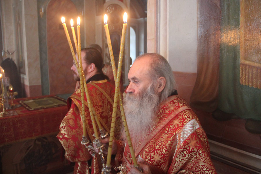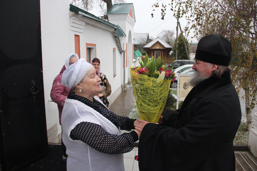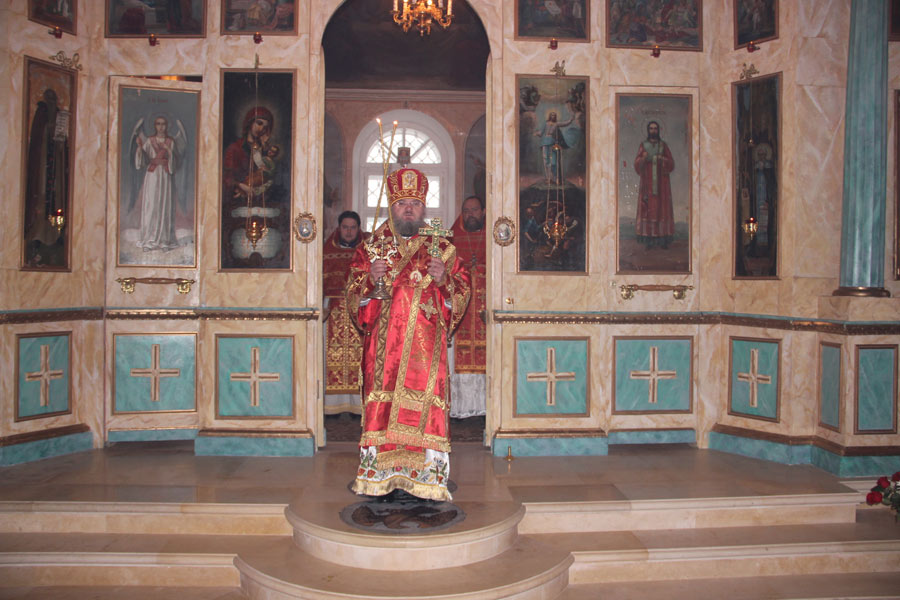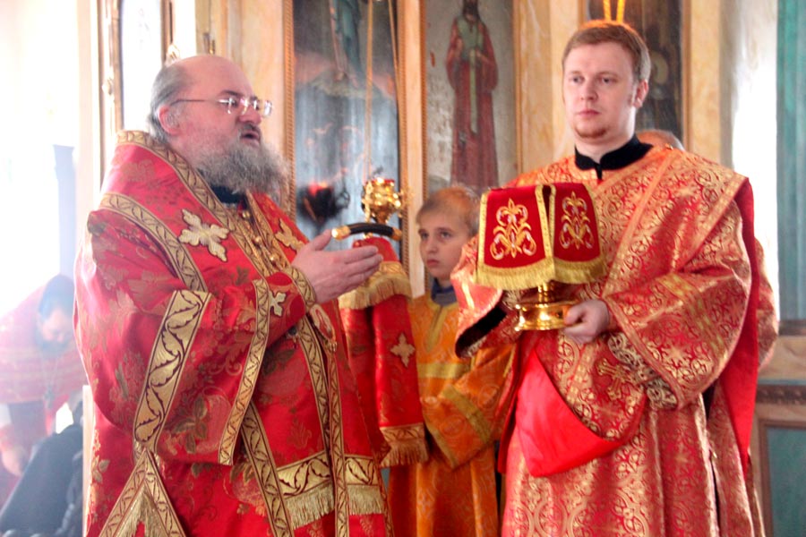 Архипастырю сослужили: настоятель храма митрофорный протоиерей Леонтий Никифоров, иерей Антоний Хатунцев, иерей Симеон Худяков, диакон Евгений Ковригин, диакон Тихон Худяков и диакон Валерий Волков. По отпусте литургии в центре храма пред иконой чествуемой святой священнослужители совершили славление, а затем владыка обратился к молящимся с архипастырским словом.