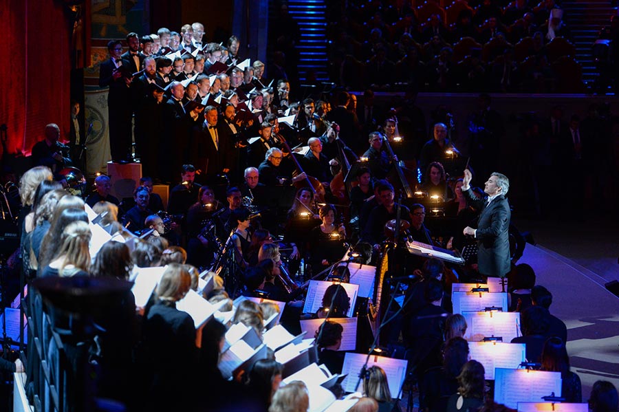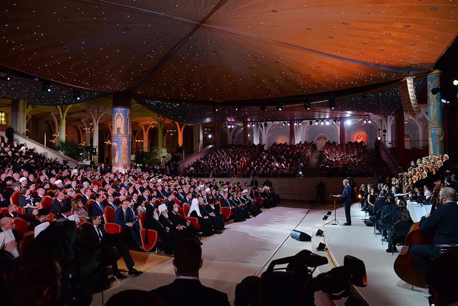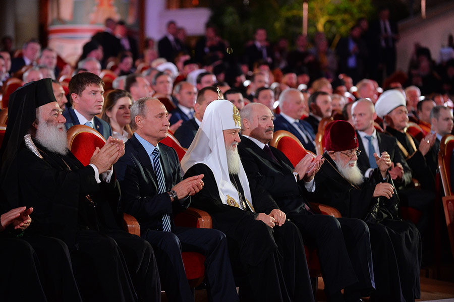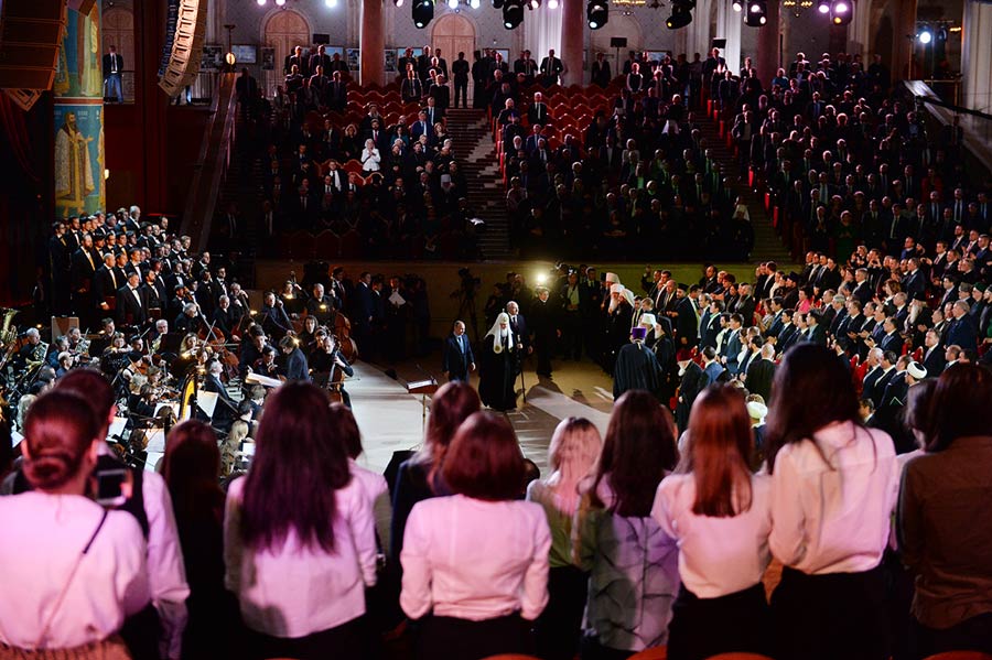 Перед началом концерта места в первом ряду Зала церковных соборов заняли: Святейший Патриарх Московский и всея Руси Кирилл; Президент Российской Федерации В.В. Путин; Президент Республики Беларусь А.Г. Лукашенко; председатель Правительства Российской Федерации Д.А. Медведев с супругой С.В. Медведевой; председатель Совета Федерации Федерального Собрания Российской Федерации В.И. Матвиенко; Блаженнейший Патриарх Александрийский и всей Африки Феодор ΙΙ; Святейший и Блаженнейший Католикос-Патриарх всея Грузии Илия ΙΙ; Святейший Патриарх Сербский, Архиепископ Печский, Митрополит Белградо-Карловацкий Ириней; Блаженнейший Архиепископ Тиранский и всей Албании, Митрополит Тирано-Дуррес-Елвасанский Анастасий; Блаженнейший Митрополит Чешских земель и Словакии Ростислав; Блаженнейший Архиепископ Вашингтонский, Митрополит всей Америки и Канады Тихон; Святейший Верховный Патриарх и Католикос всех армян Гарегин II; кардинал Курт Кох, председатель Папского совета по содействию христианскому единству; шейх-уль-ислам Аллахшукюр Паша-заде, председатель Управления мусульман Кавказа; члены Священного Синода Русской Православной Церкви.