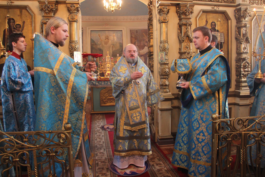 Архипастырю сослужили: протоиерей Павел Морозов, иерей Антоний Хатунцев, иерей Сергий Барыкин – настоятель храма, диакон Евгений Ковригин и диакон Олег Леонов. После сугубой ектении епископ Никита прочел молитву о воцарении мира на страждущей Украинской земле.