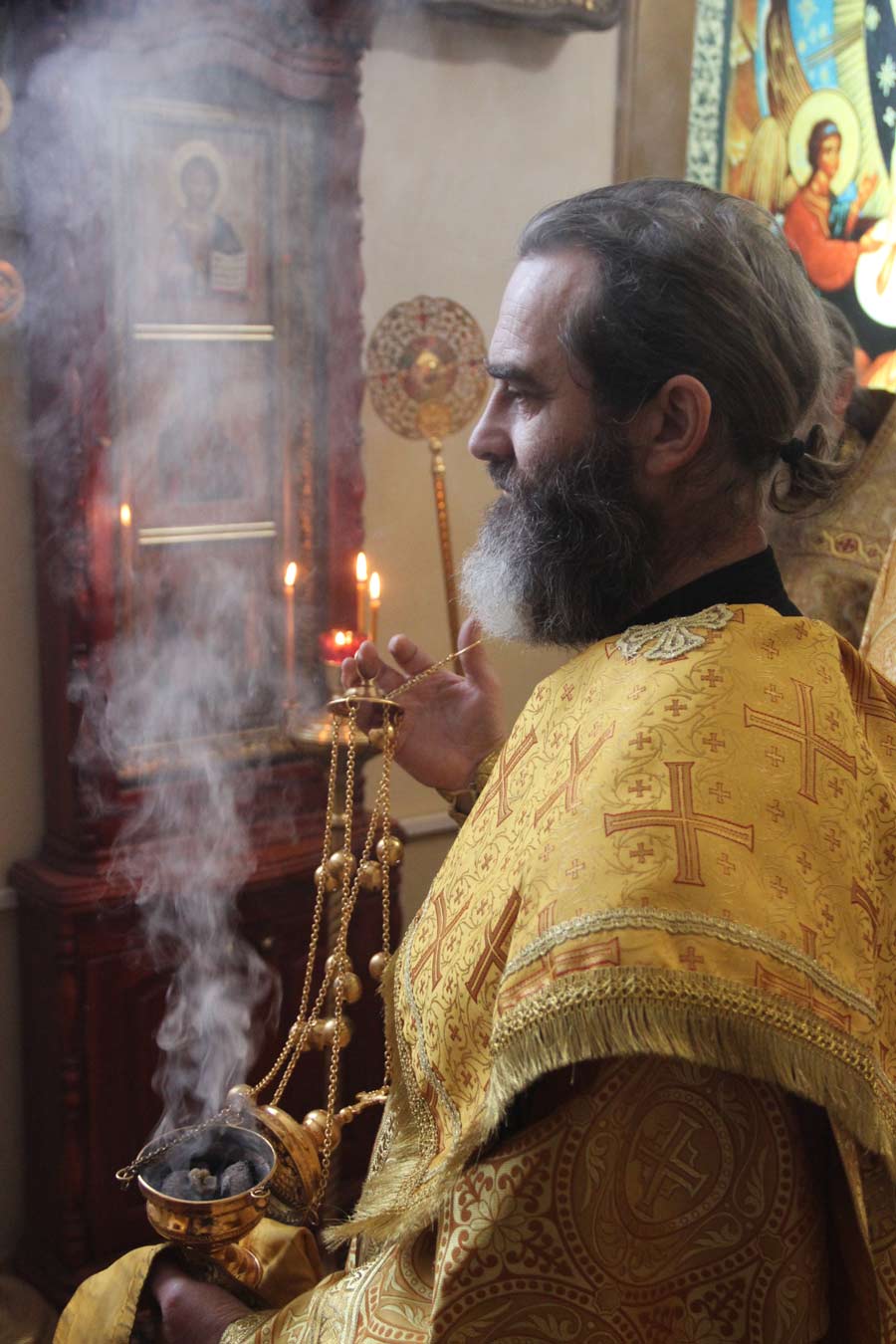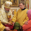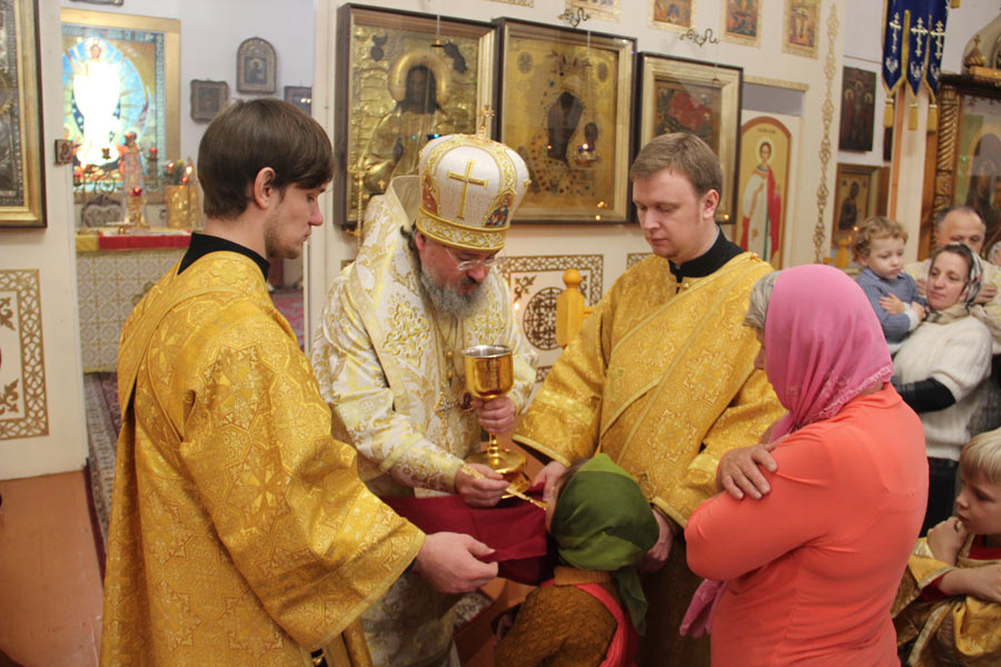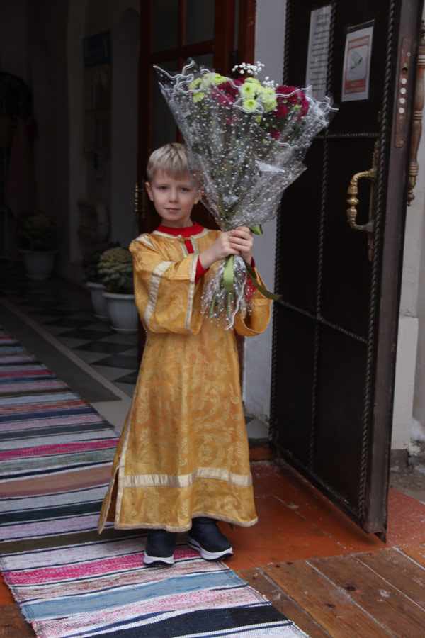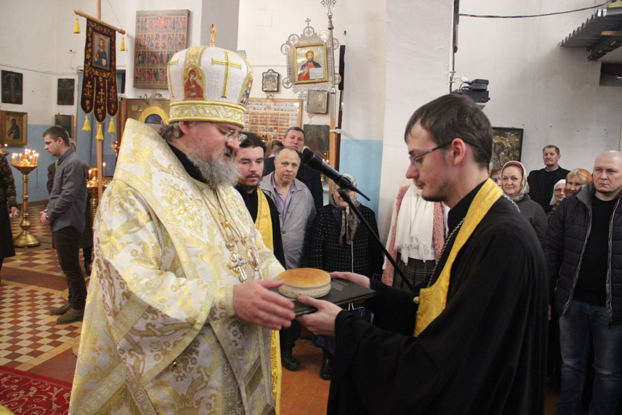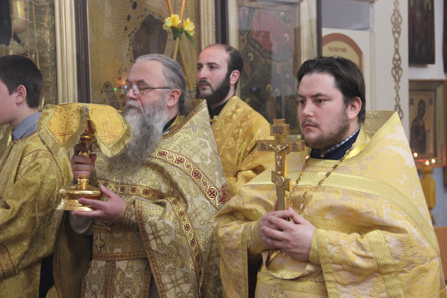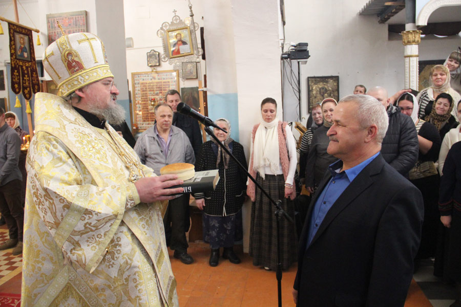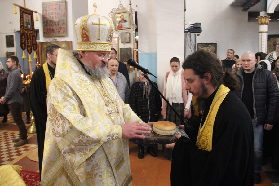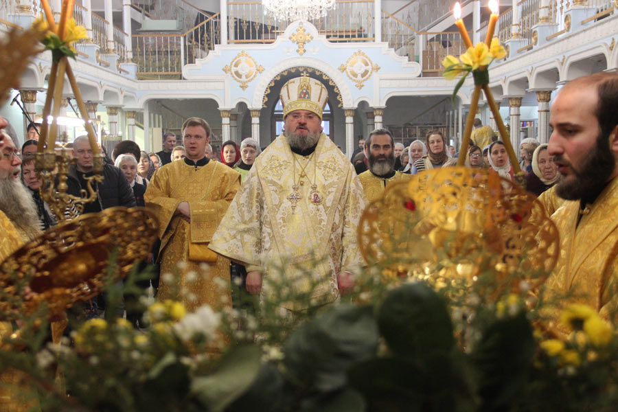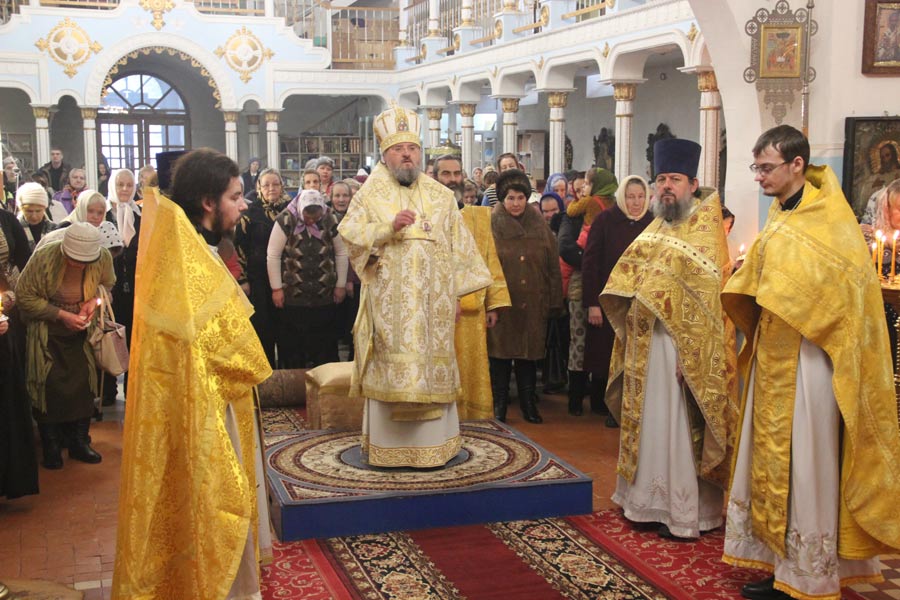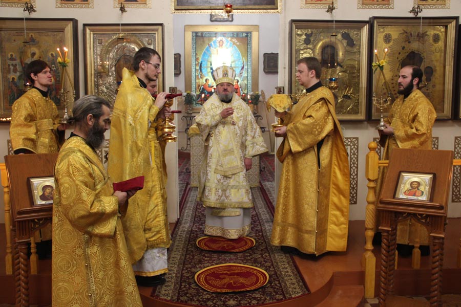 За богослужением была вознесена молитва о мире в земле Украинской. По отпусте литургии владыка обратился к богомольцам со словом назидания. Архипастырь поздравил клириков и мирян епархии отмечающих день рождения и день своего небесного покровителя с именинами и преподнес им святую просфору и памятные подарки.