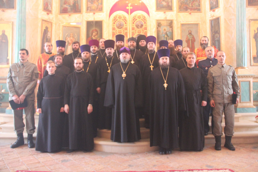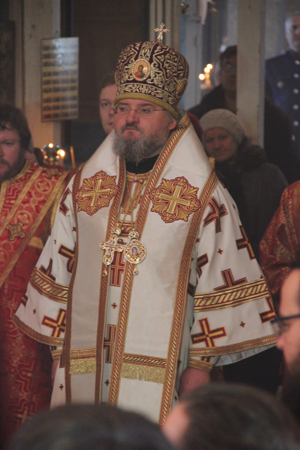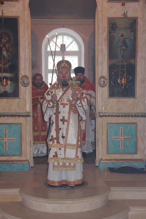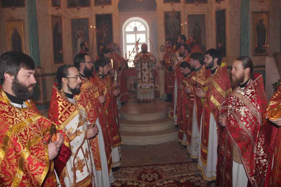 Архипастырю сослужили: благочинный первого (Козельского) благочиния, секретарь епархии – протоиерей Владимир Бахаев и клирики храмов города Козельска и Козельского района. За богослужением молился настоятель храма митрофорный протоиерей Леонтий Никифоров.
