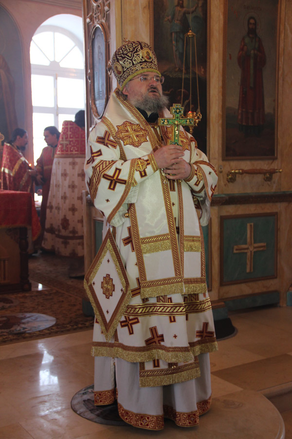 По отпусте литургии священнослужители совершили молебен преподобномученику Гурию, затем, вознеся молитву святому, владыка обратился к богомольцам с архипастырским словом.
