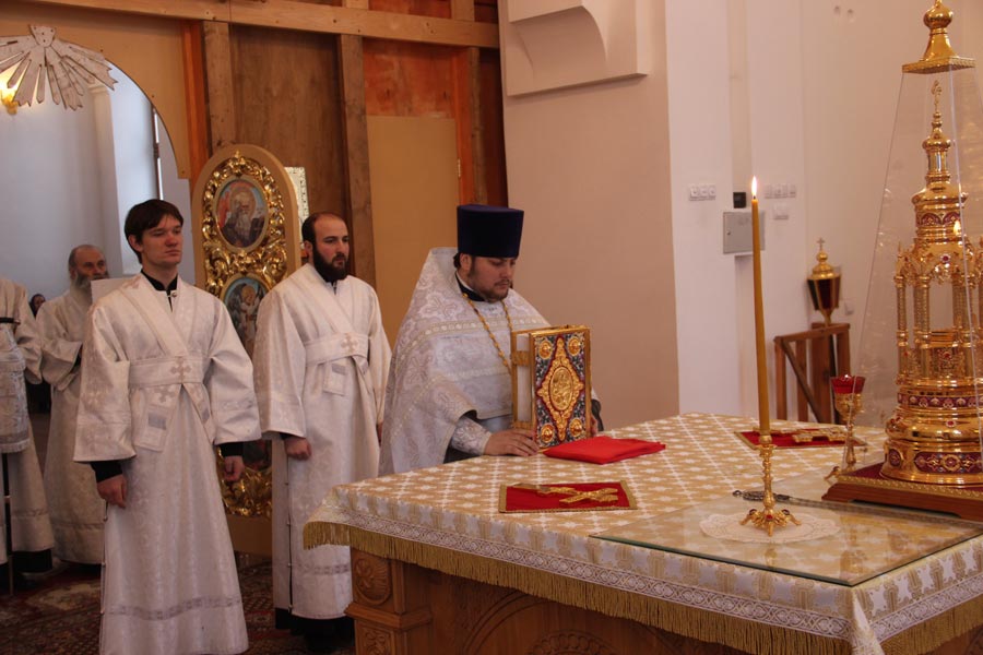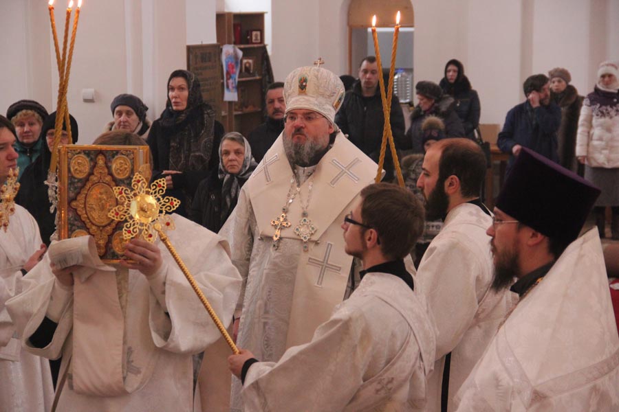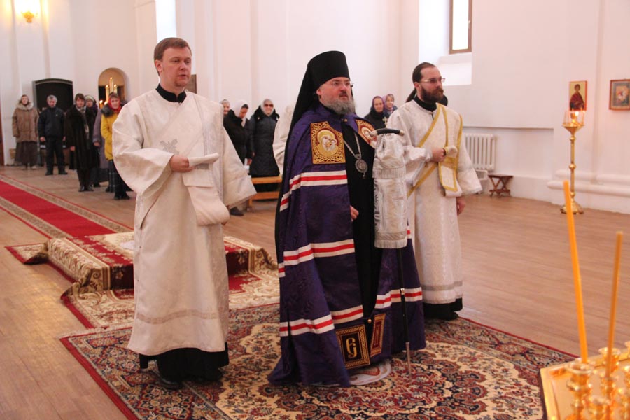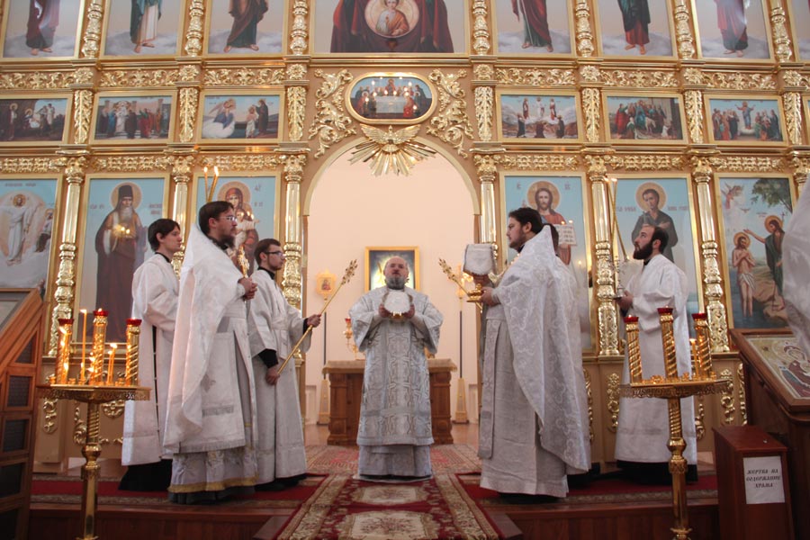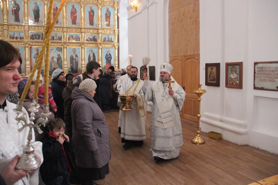 Епископ Козельский и Людиновский Никита совершил Божественную литургию в Богоявленском храме города Козельска. Архипастырю сослужили: иерей Антоний Хатунцев, иерей Дионисий Куваев, диакон Евгений Ковригин и диакон Тихон Худяков.