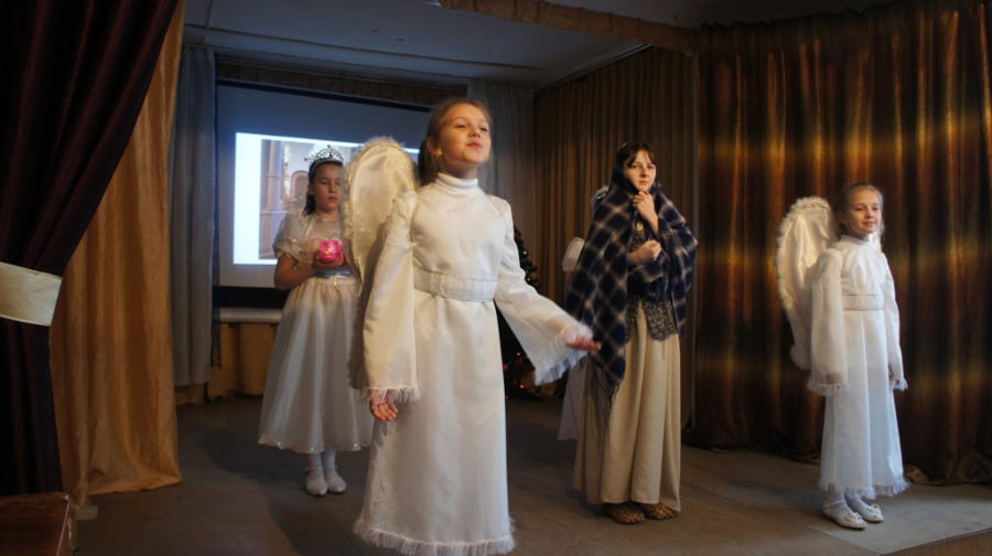 Ведущая Иванова М.А. читала стихотворения о Рождестве, а воспитанники театральной студии «Образ» (под рук. Букановой Л.И.) подготовили и поставили спектакль «Рождественский ангел».