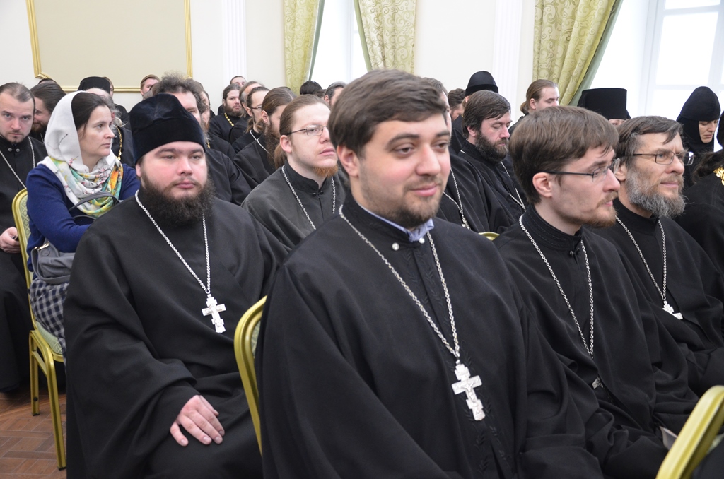 «Первый вопрос, который я хотел бы сегодня затронуть, это служение клириков, наших пастырей. Подавляющее большинство из них в нашей митрополии имеет высшее богословское образование, некоторые имеют ученые степени. Это очень важно в наше время. Мы не так давно отмечали юбилей семинарии 240 лет с момента образования и 20 лет с момента восстановления. Сейчас на очном отделении обучается около 60-ти, заочно около 250 студентов. На общем уровне других семинарий, не считая самых крупных (Московской, Санкт-Петербургской, Киевской, Минской) — это хороший результат и соответствует областям с большим населением», констатировал архиерей. Он сравнил, что в XIX веке количество учащихся на разных ступенях образования в Калужской духовной школе доходило до 900 человек, при меньшей численности населения, чем сегодня. «Для чего мы это делаем? Приходы должны иметь священников, способных грамотно работать с людьми. Работы становиться все больше. Так согласно опросам общественного мнения, количество людей, интересующихся православием сокращается. Мы не должны ограничиваться окормлением только своих прихожан, которые и так находятся в церковной ограде. По средним показателям в Калужской области, не считая приезжих и дачников, на одного священника приходится около 4 тысяч крещенных православных». Архипастырь поинтересовался, где же хотя бы большинство и них? Их надо вернуть в жизнь Церкви, в которой они приняли крещение и благодать Святого Духа. А для этого надо больше работать священнику. Владыка привел пример работы духовенства за границей, где борются за каждого прихожанина. «Не пришел на службу – настоятель позвонит, поинтересуется, что случилось; заболел — навестит в больнице. А у нас кажется много народа, да только в храм новые люди приходят за требой или после скорбного события. Что тут говорить о их духовной жизни и христианском подвиге. А тем, кто жалуется, что вообще никто не ходит, можно ответить только одно: надо самому больше служить и молиться, у такого священника обязательно появится паства. И таких примеров множество».