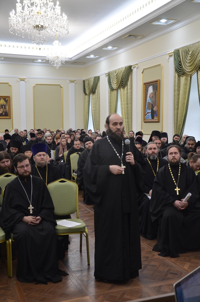 Протоиерей Андрей Безбородов, руководитель Калужского епархиального Отдела по изучению истории епархии в XX веке и канонизации святых прочитал доклад на тему: «1917-2017: Потери и обретения».