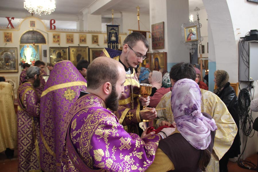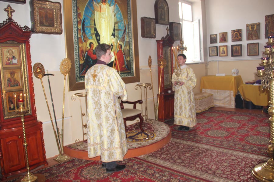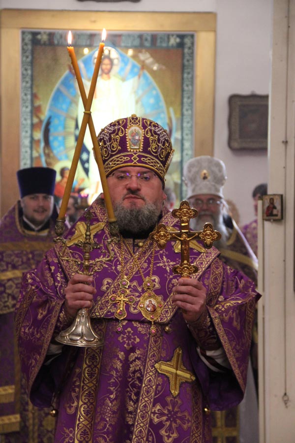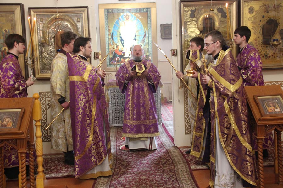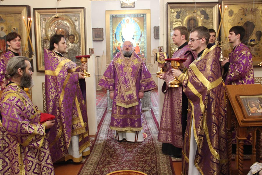 Архипастырю сослужили: настоятель собора протоиерей Алексий Жиганов, иерей Антоний Хатунцев, иерей Алексий Сначев, диакон Евгений Ковригин и диакон Андрей Соколов.