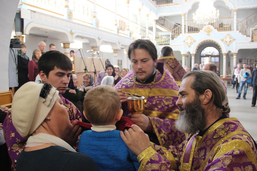 На Малом Входе, по благословению Святейшего Патриарха Московского и всея Руси Кирилла, протоиерей Алексий Жиганов был удостоен права ношения митры, а священник Антоний Хатунцев возведен в сан протоиерея.