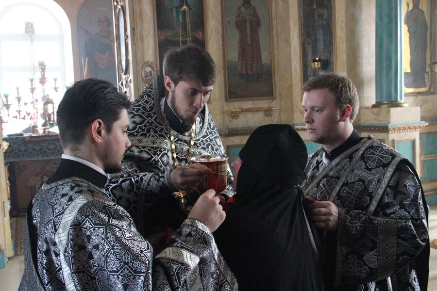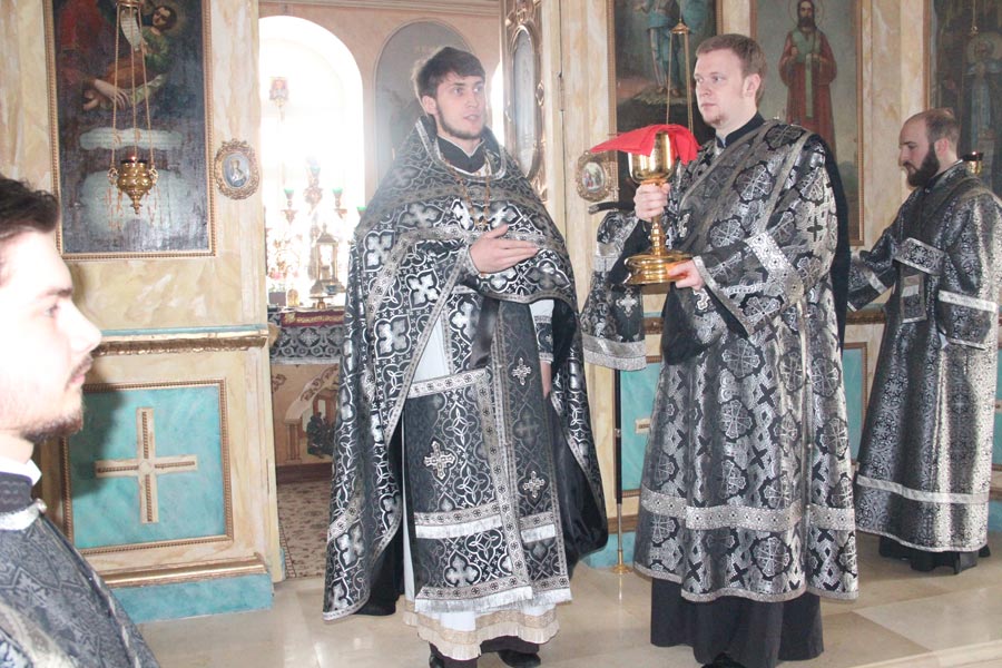 Перед началом богослужения иеромонах Тихон принял исповедь у священнослужителей.