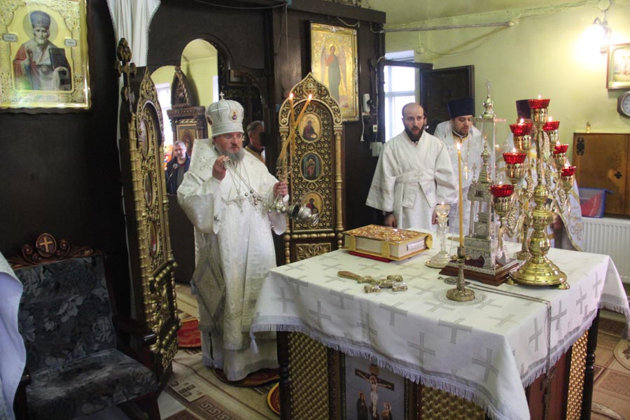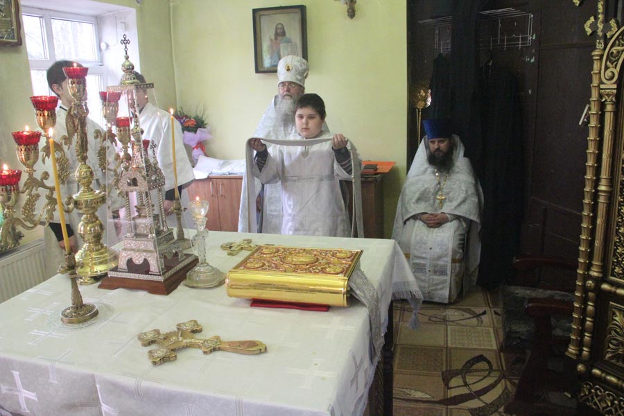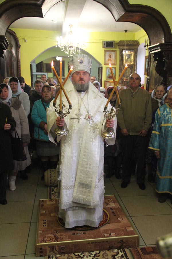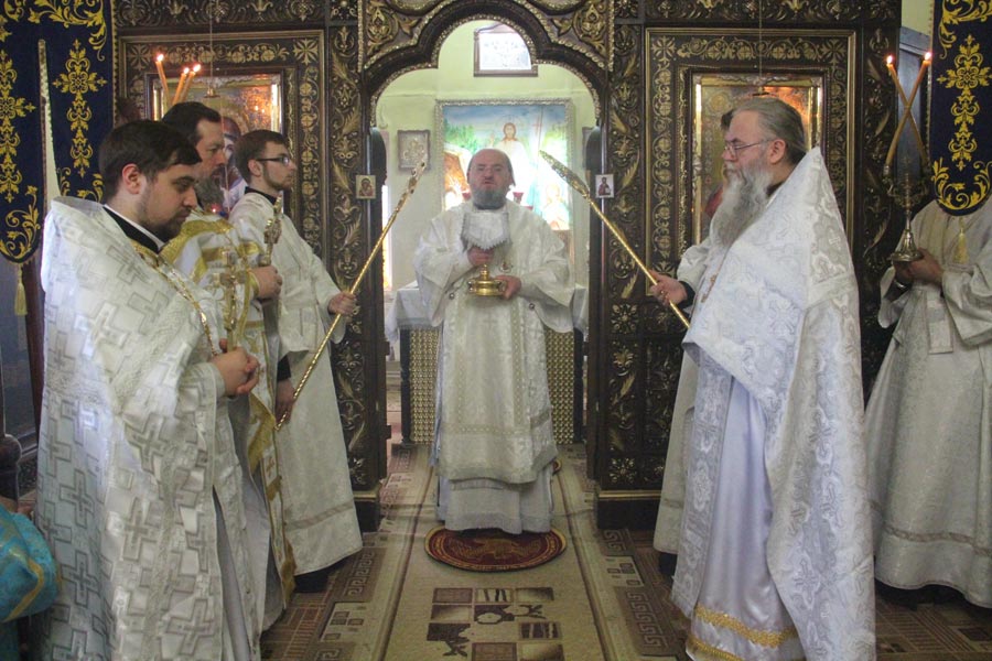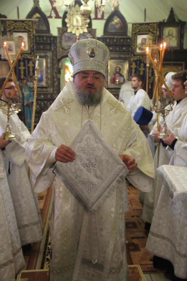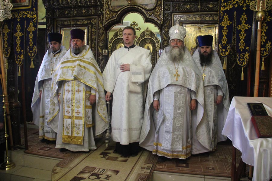 Архипастырю сослужили: духовник епархии митрофорный протоиерей Алексий Жиганов, благочинный округа протоиерей Василий Биляк, настоятель храма протоиерей Михаил Карпенко, иерей Артемий Арутюнян и диакон Евгений Ковригин.