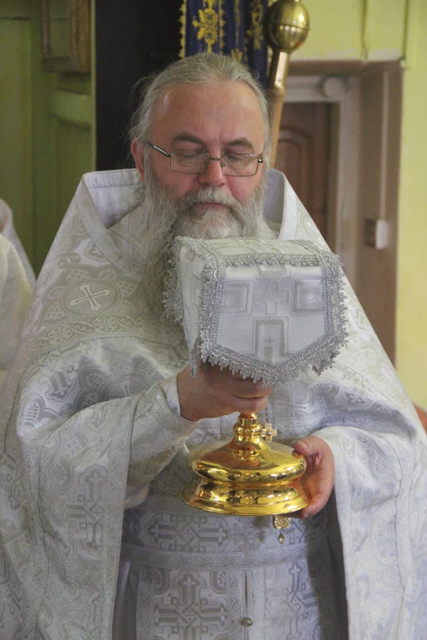 На Малом Входе, по благословению Святейшего Патриарха Московского и всея Руси Кирилла, протоиерей Михаил Карпенко был удостоен права ношения палицы.