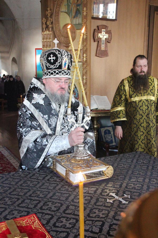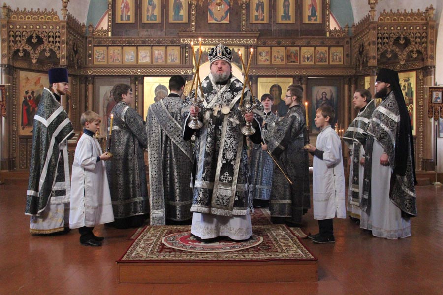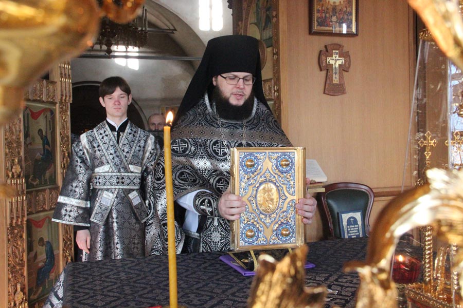 Архипастырю сослужили: настоятель собора иеромонах Паисий (Курмаз), иерей Елисей Тимофеев, иерей Дмитрий Торшин, диакон Евгений Ковригин и диакон Евгений Васильев.