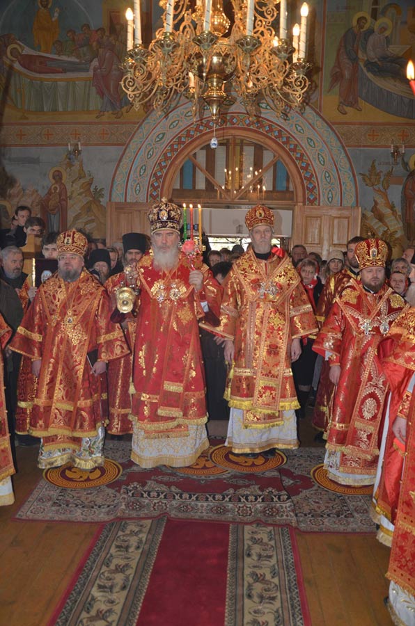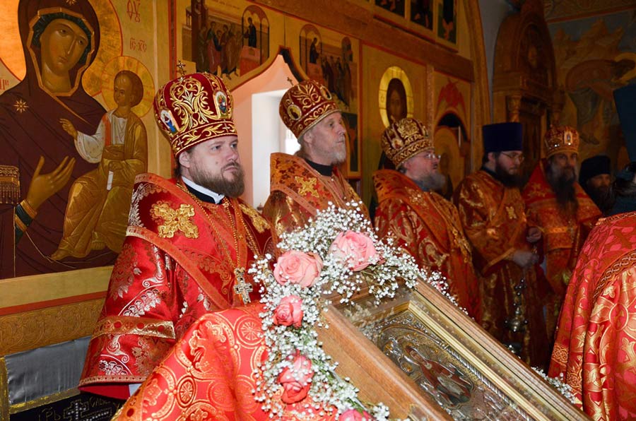Божественную литургию совершили: митрополит Калужский и Боровский Климент, архиепископ Песоченский и Юхновский Максимилиан, епископ Козельский и Людиновский Никита, епископ Тарусский Серафим, викарий Калужской епархии, духовенство Калужской, Козельской и Песоченской епархий, протодиаконы: Алексий Хамтеев, Сергий Комаров — руководитель Калужской епархиальной пресс-службы. Богослужебные песнопения исполнил хор Калужской духовной семинарии.