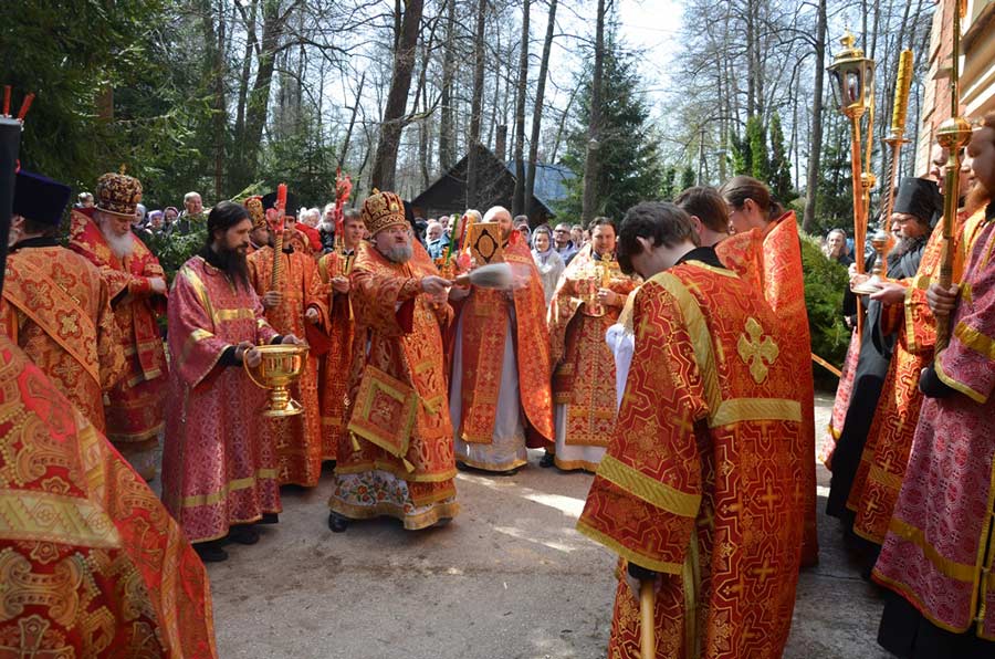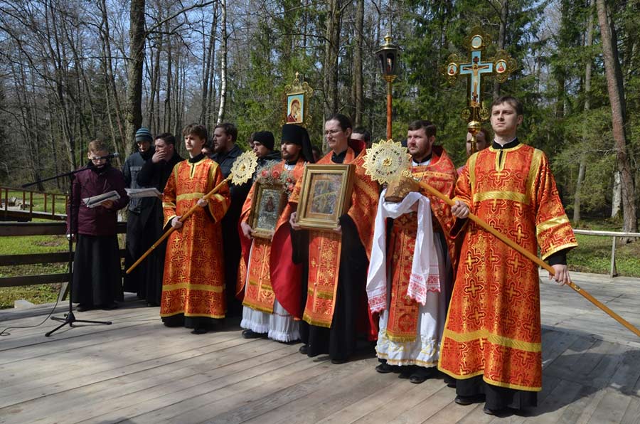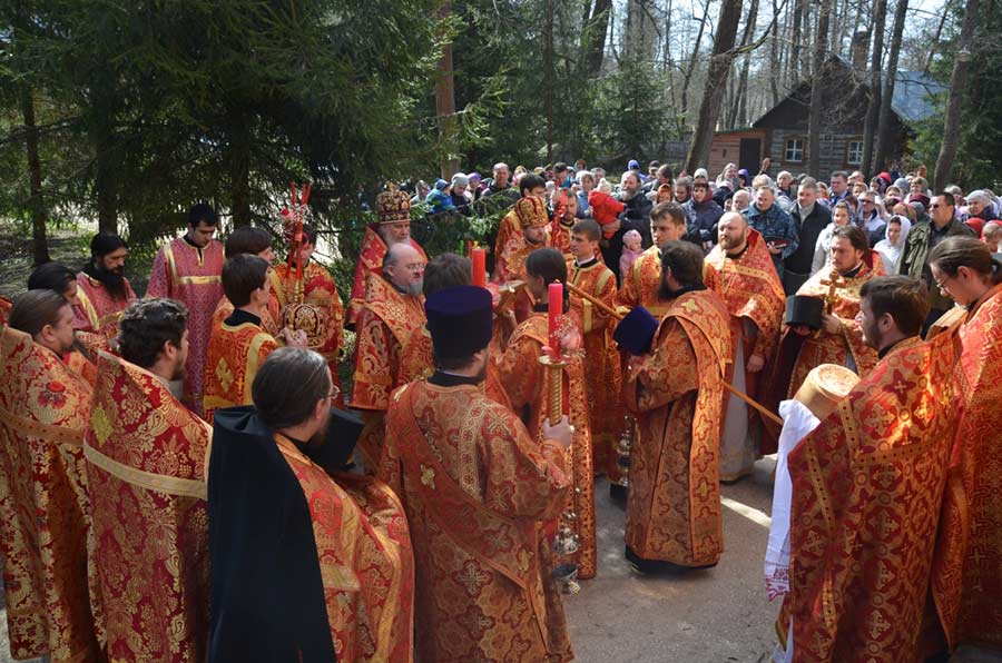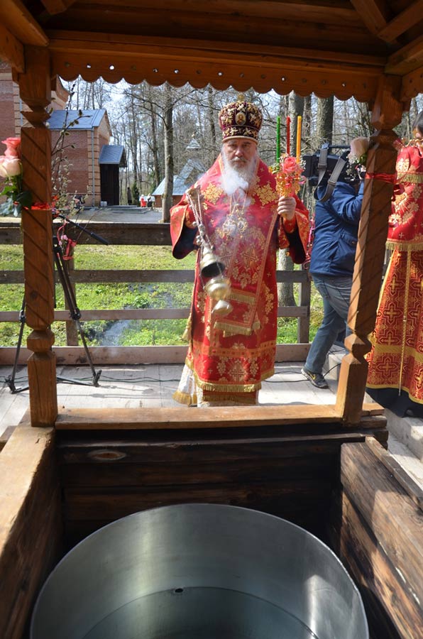После окончания богослужения состоялся Пасхальный крестный ход к святому источнику, где был совершен водосвятный молебен. По окончании молитвословий митрополит Климент обратился к богомольцам с проповедью.