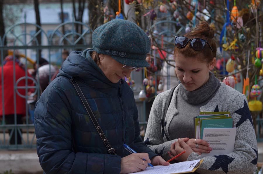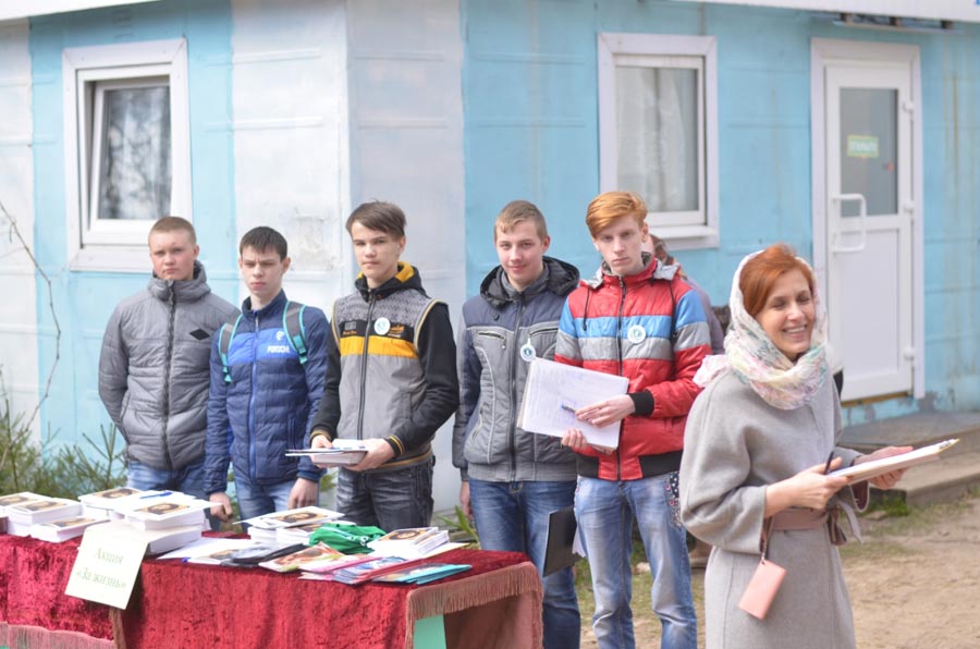 В день Великой Субботы, после подписи настоятеля митрофорного протоиерея Алексия Жиганова, под документом также поставили свои подписи священнослужители собора, студенты, прихожане, а также сотни людей, которые пришли в храм освятить Пасхальные куличи. В проведении акции приняли активное участие студенты Людиновского индустриального техникума и психолог ГБУ КО ЦСПСД «Чайка» г. Людиново.
