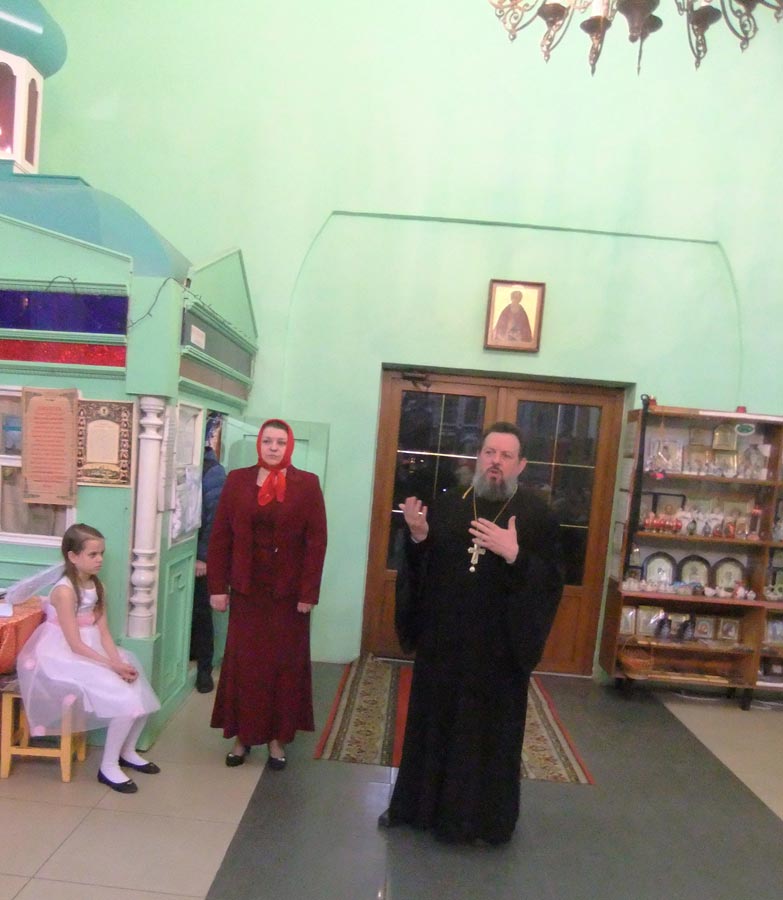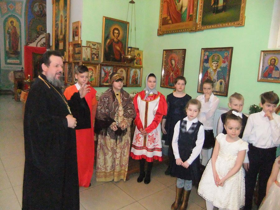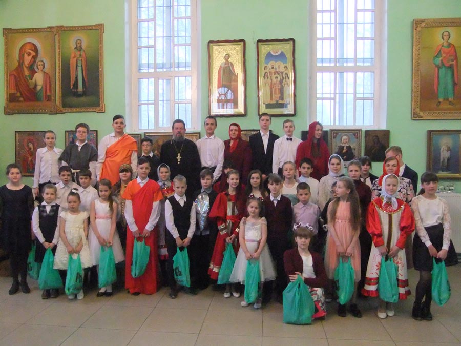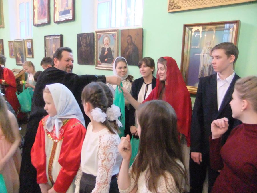 После выступления детей, настоятель храма протоиерей Василий Биляк поздравил всех со Светлым Христовым Воскресением и вручил подарки.