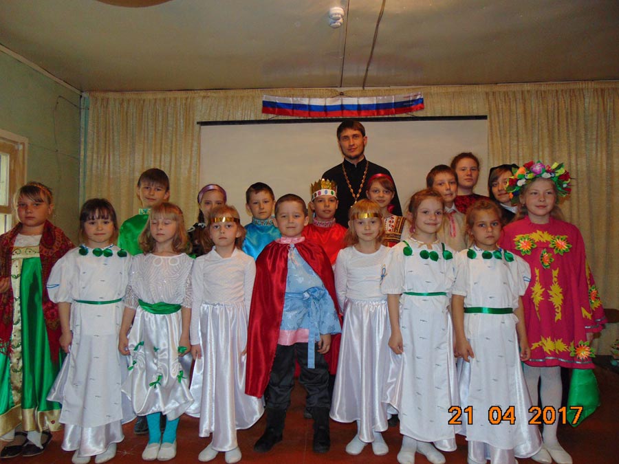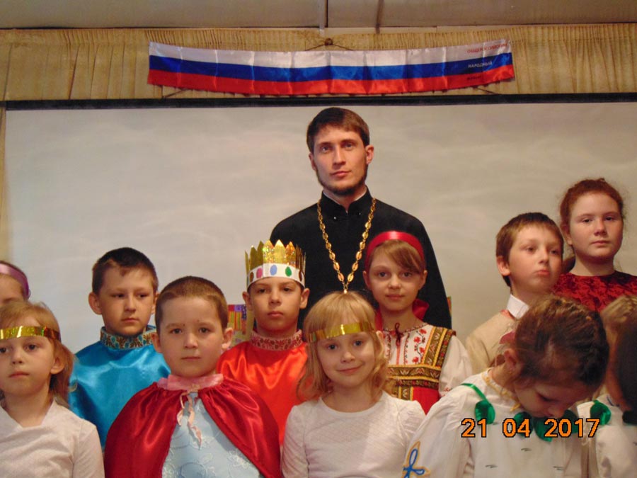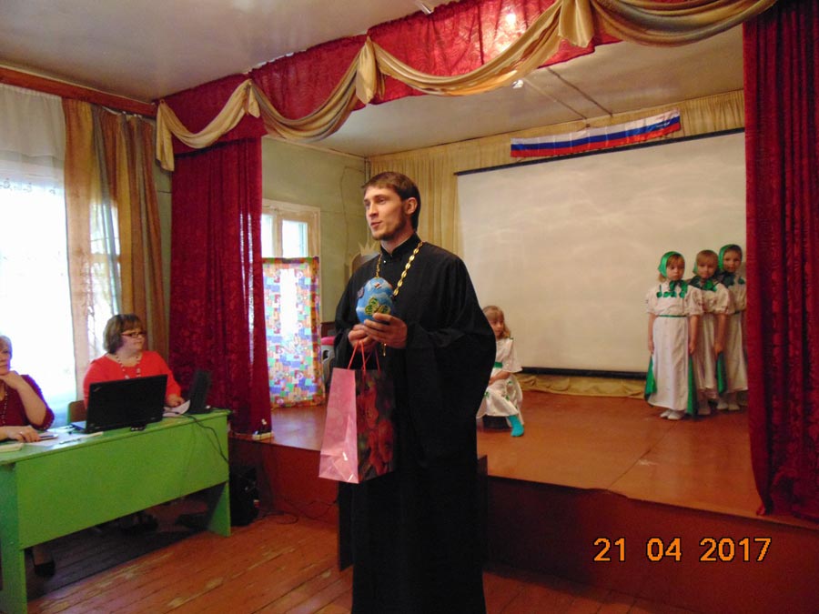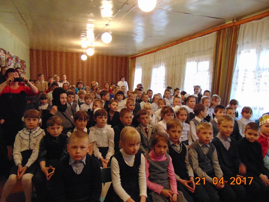 В актовом зале для гостей было подготовлено выступление школьников и воспитанников детского сада, посвященное Светлому Христову Воскресению.