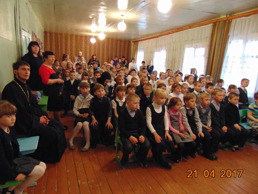 21 апреля, в пятницу светлой седмицы, иерей Евгений Мягков, настоятель храма в честь свт. Николая с. Березичи, посетил Среднюю Общеобразовательную Школу Стекольного Завода.