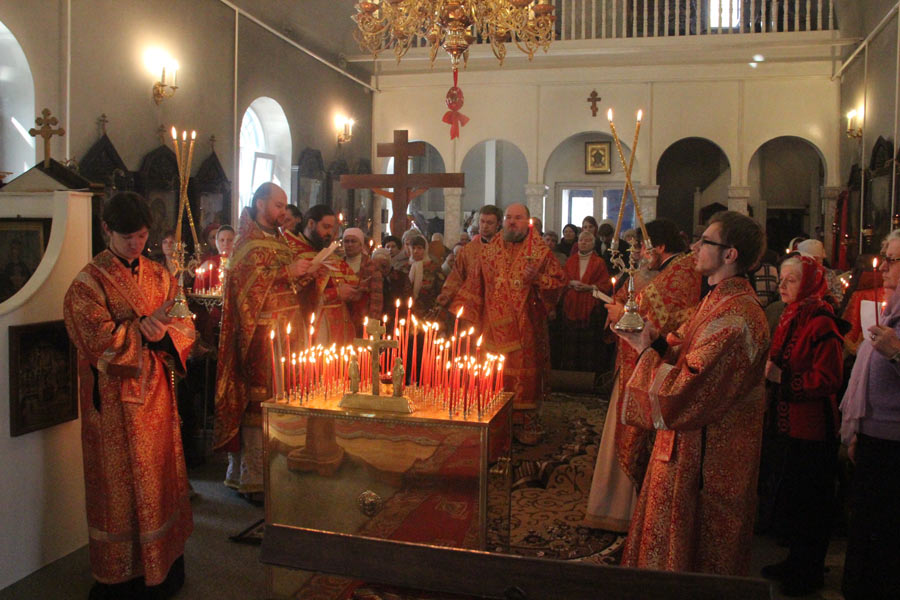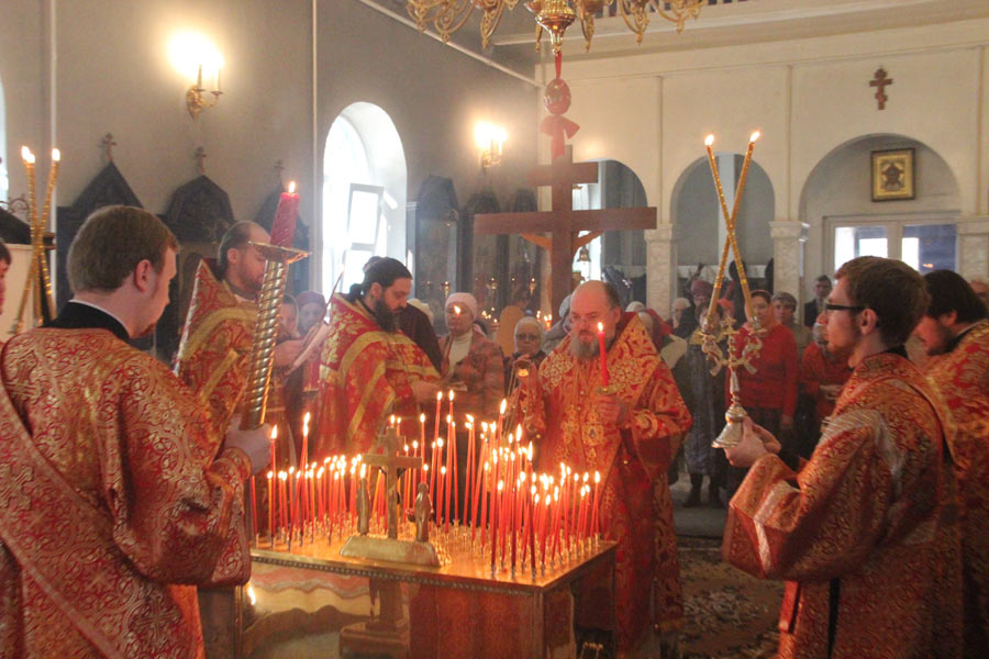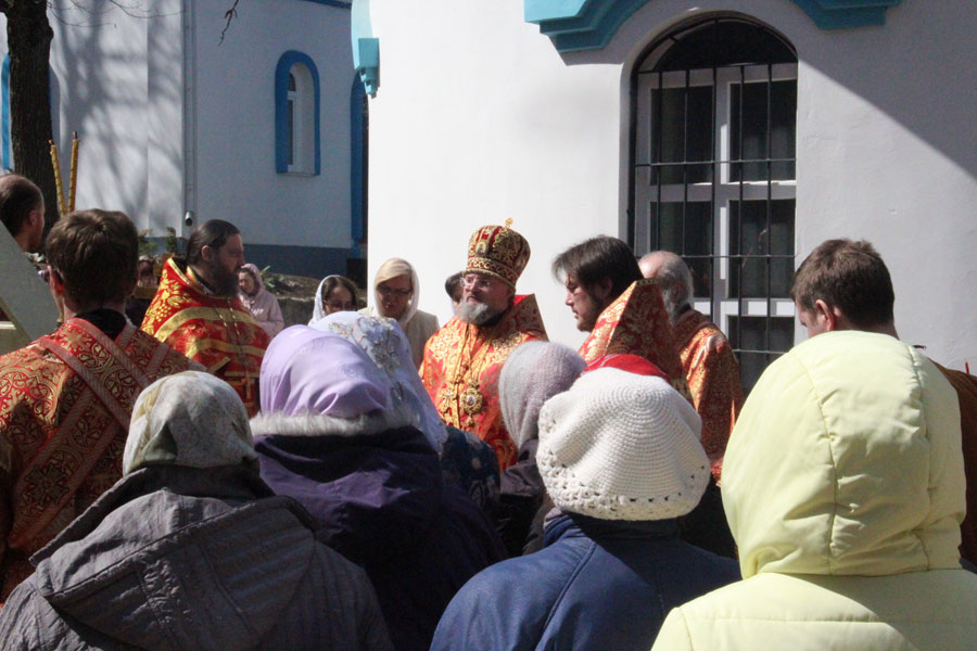 Архипастырю сослужили: протоиерей Павел Синицын – настоятель храма, протоиерей Антоний Хатунцев, иерей Павел Кузнецов и диакон Евгений Ковригин. По отпусте литургии священнослужители совершили панихиду по всем от века усопшим православным христианам и литию на могилах почивших клириков епархии – иеромонаха Дионисия (Ладохи) и протоиерея Владимира Финогенова, похороненных у стен храма.