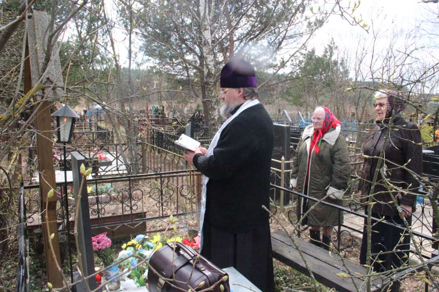 После богослужения владыка Никита совершил панихиды на могилах своих усопших сродников, покоящихся на городском кладбище города Обнинска.
